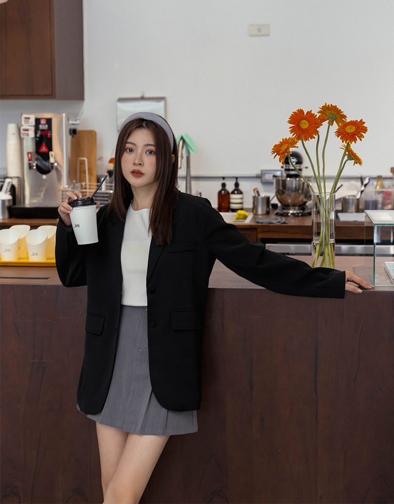 • 兩穿-木耳滾邊超彈抓皺上衣