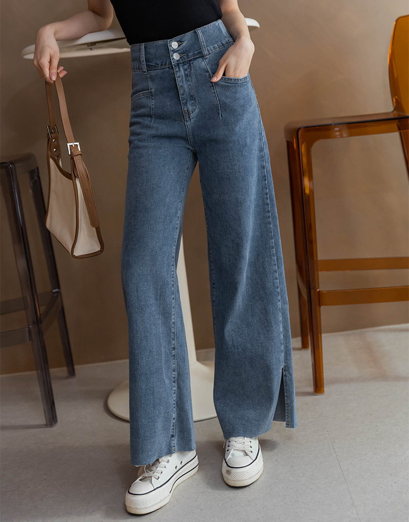 -5KG時髦後鬆緊側開岔牛仔寬褲