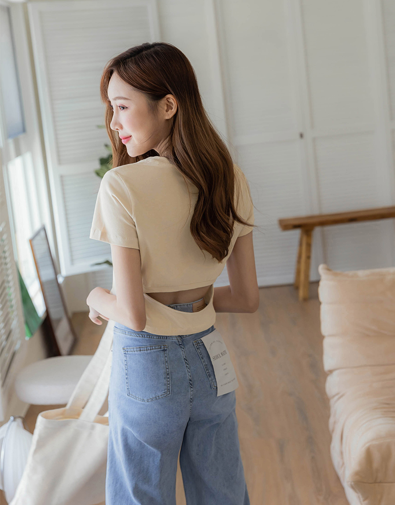 心機後挖空刺繡微絨感上衣