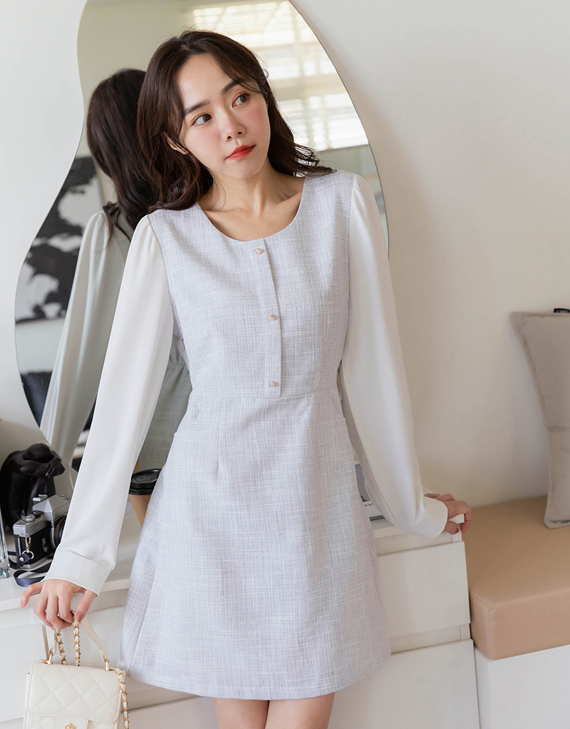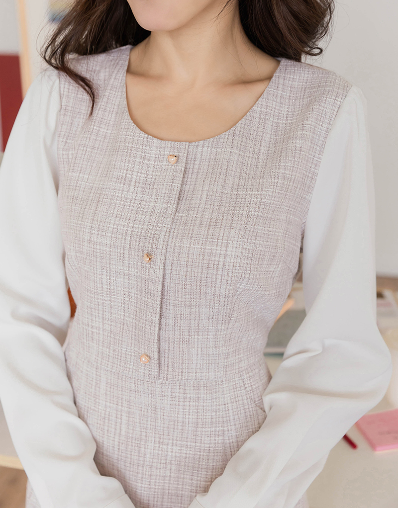小香風愛心釦混色感洋裝