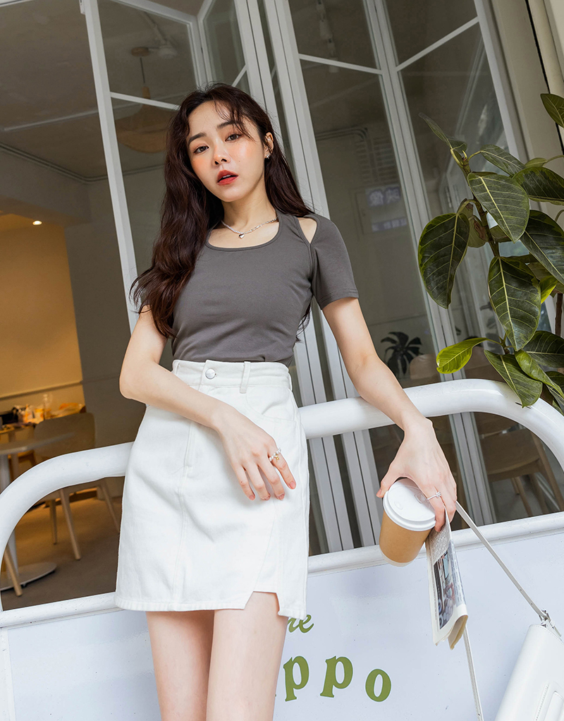 後鬆緊水洗棉開岔造型褲裙