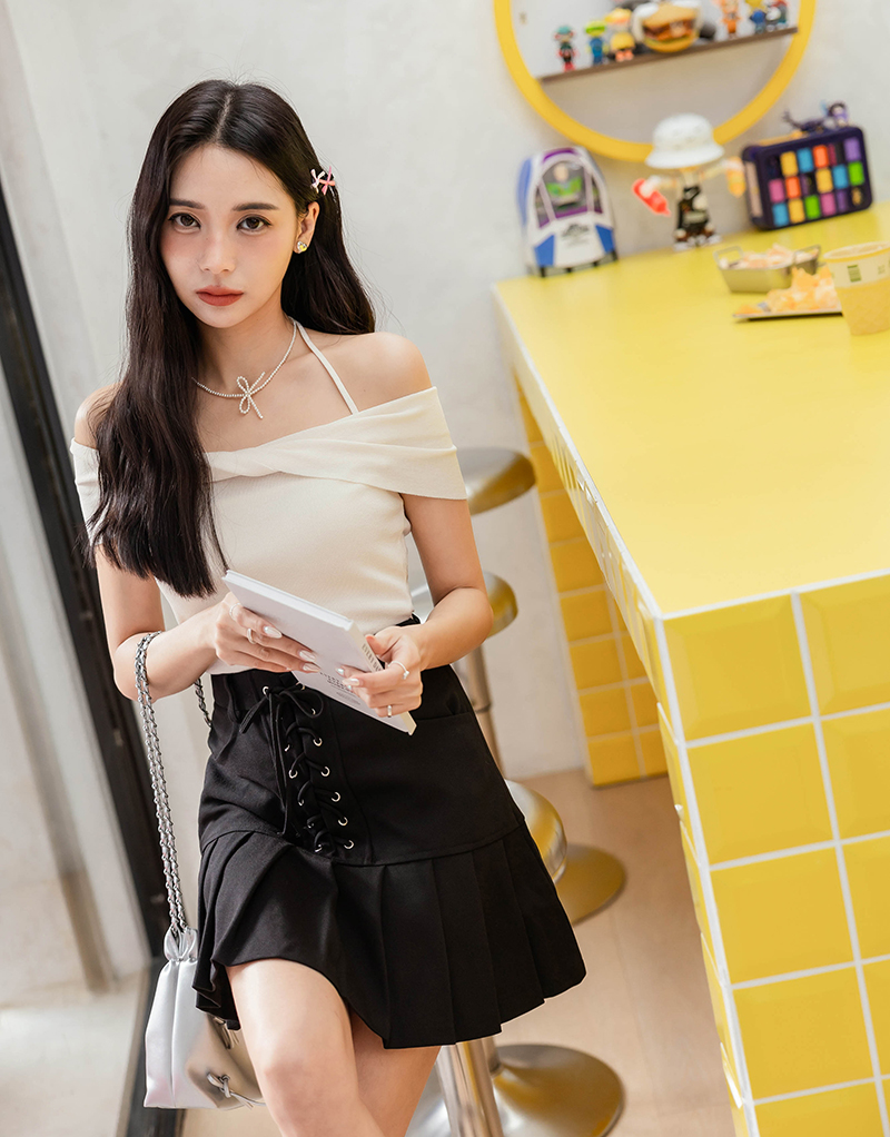 有型挖肩抽繩綁帶襯衫上衣