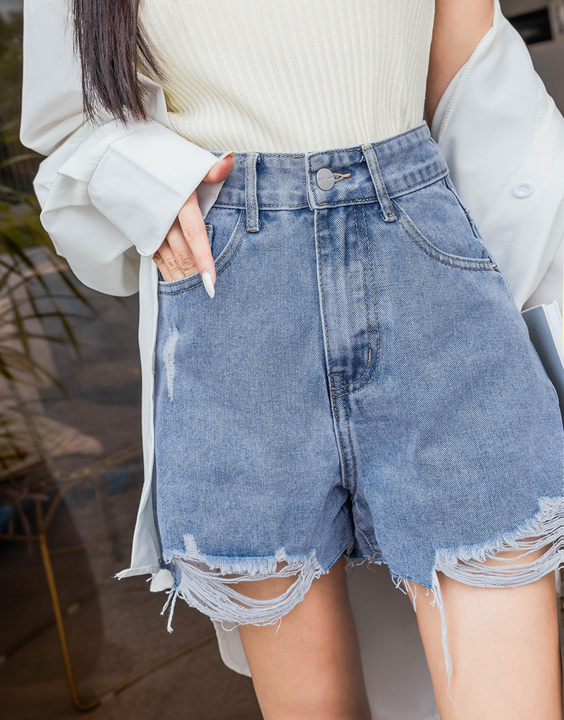 -5KG後口袋缺口破損牛仔短褲