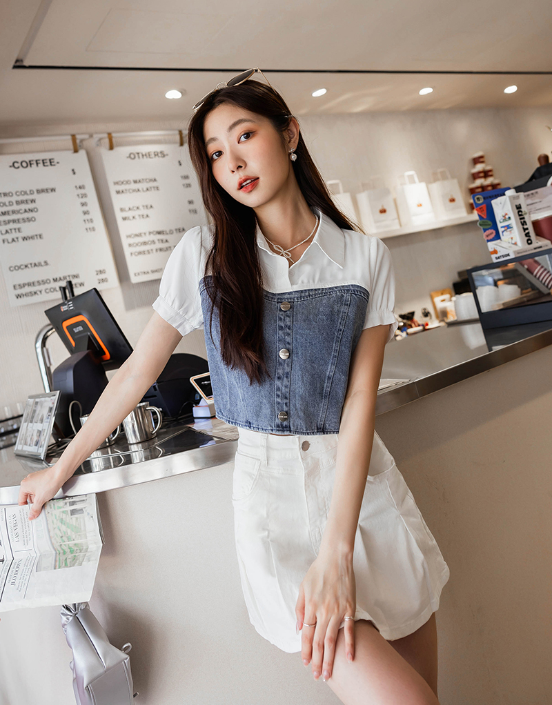 桃心領假兩件異材質上衣