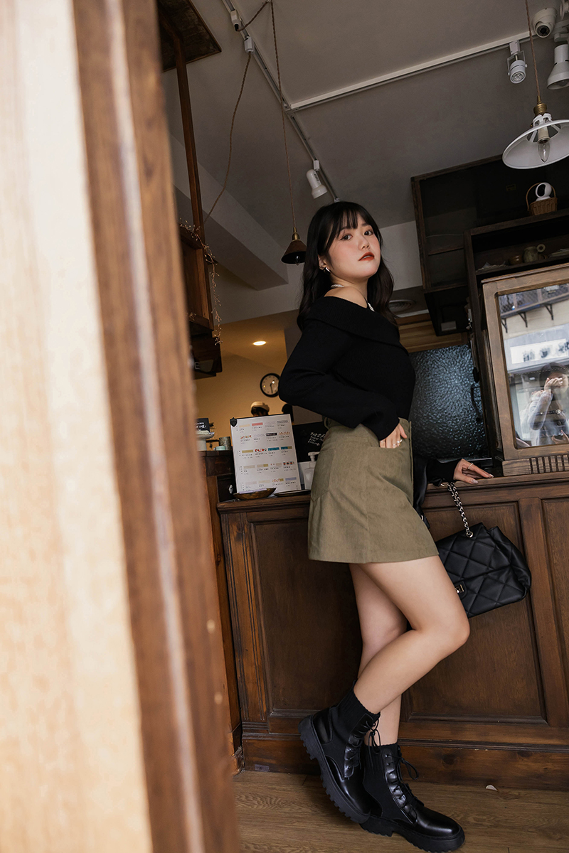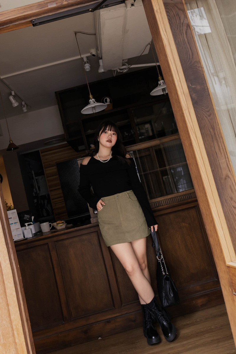 雙釦後鬆緊燈芯絨褲裙