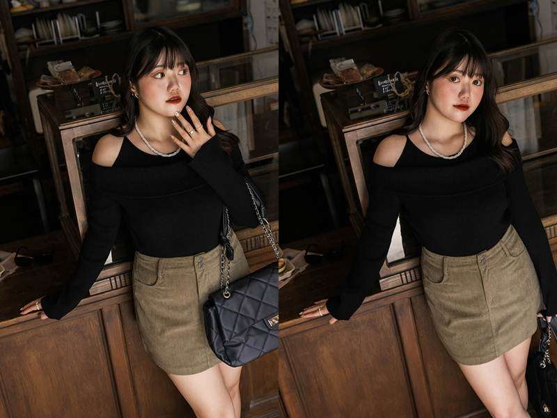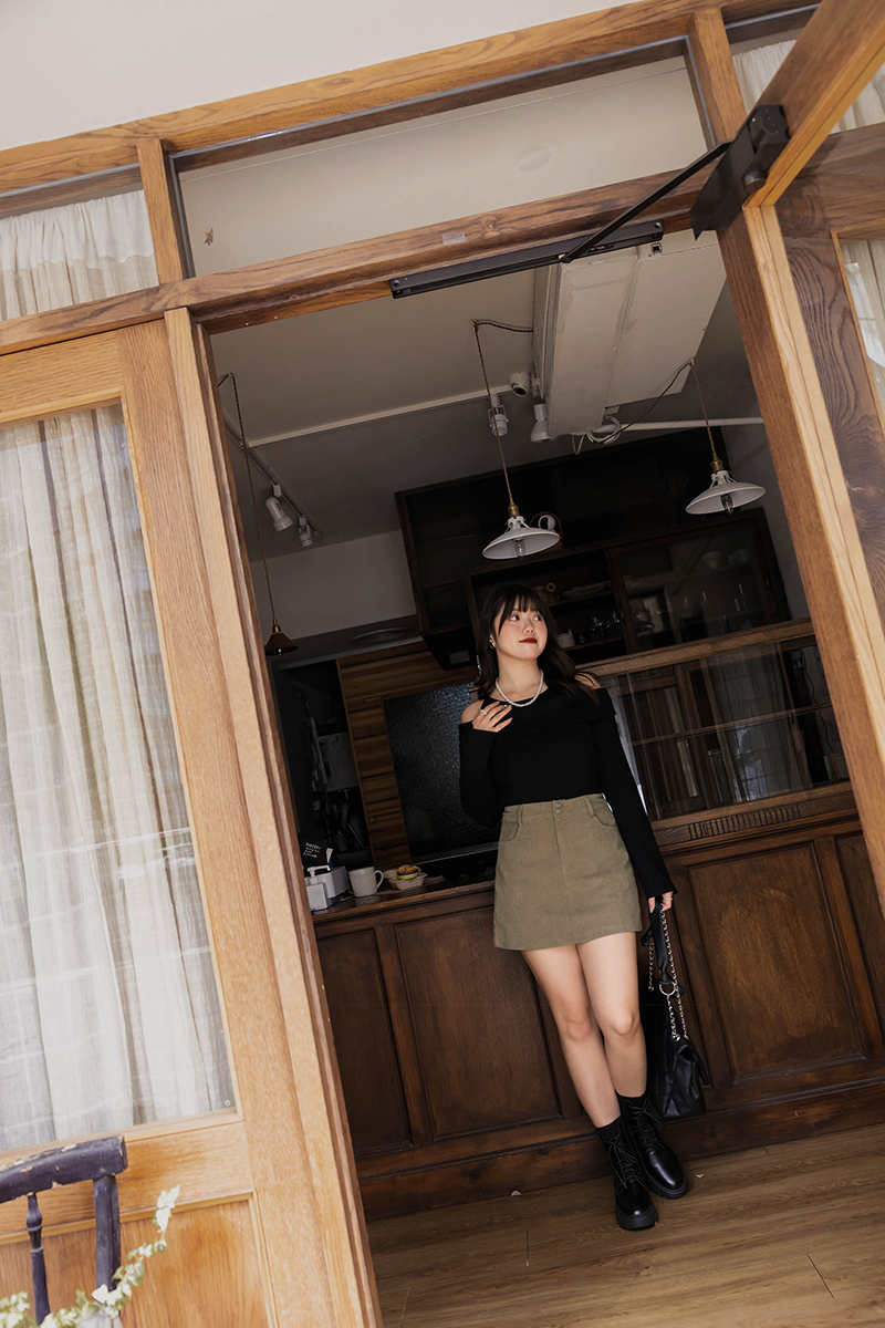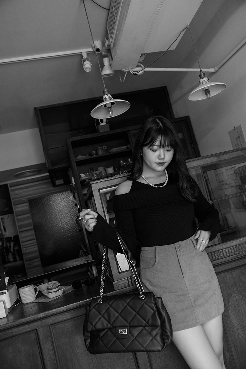 • 微性感挖肩針織上衣