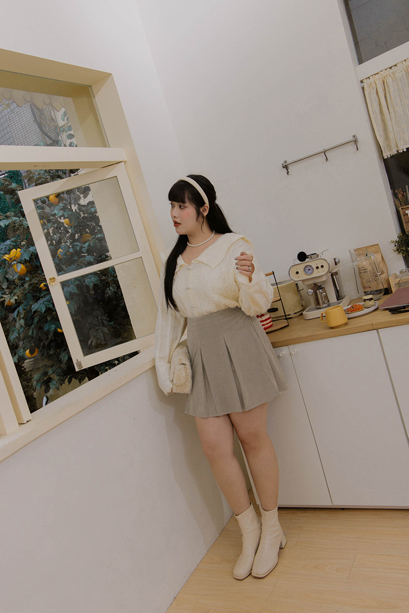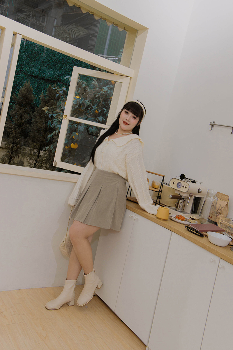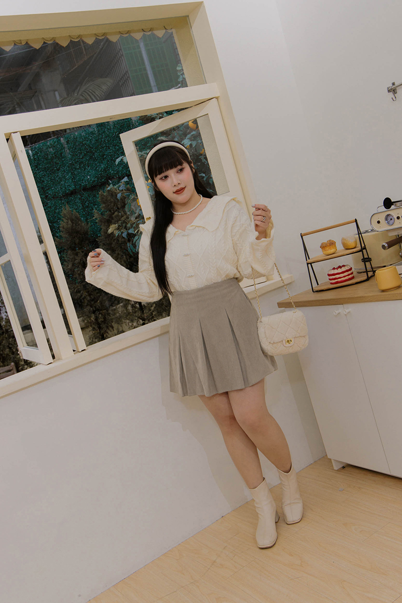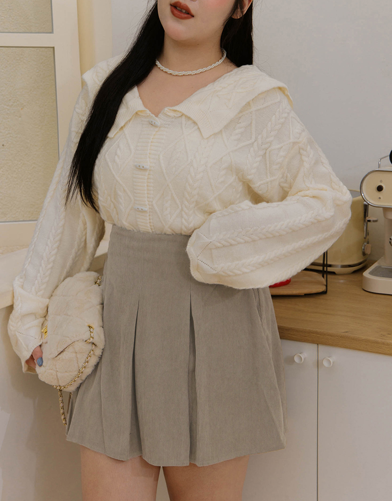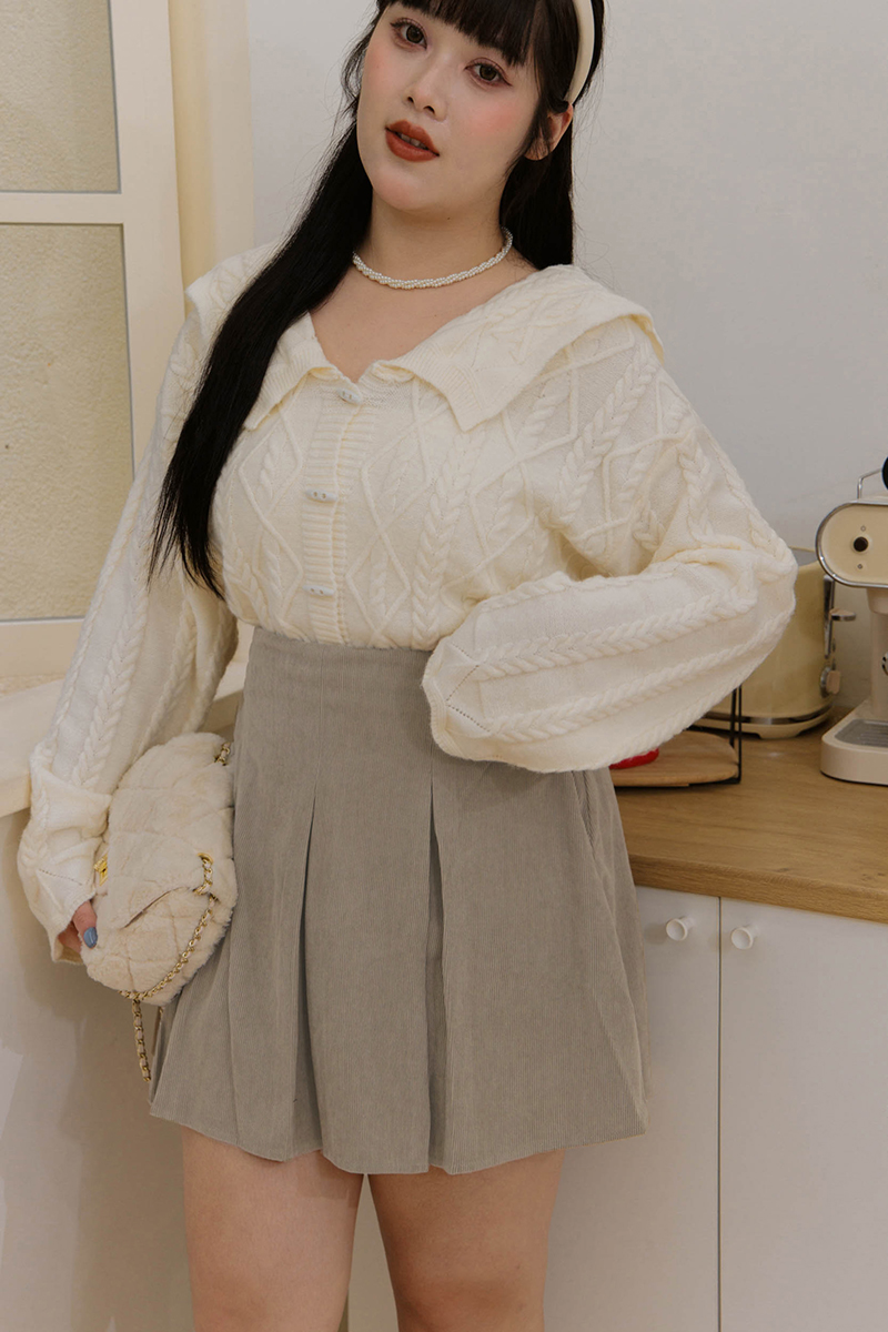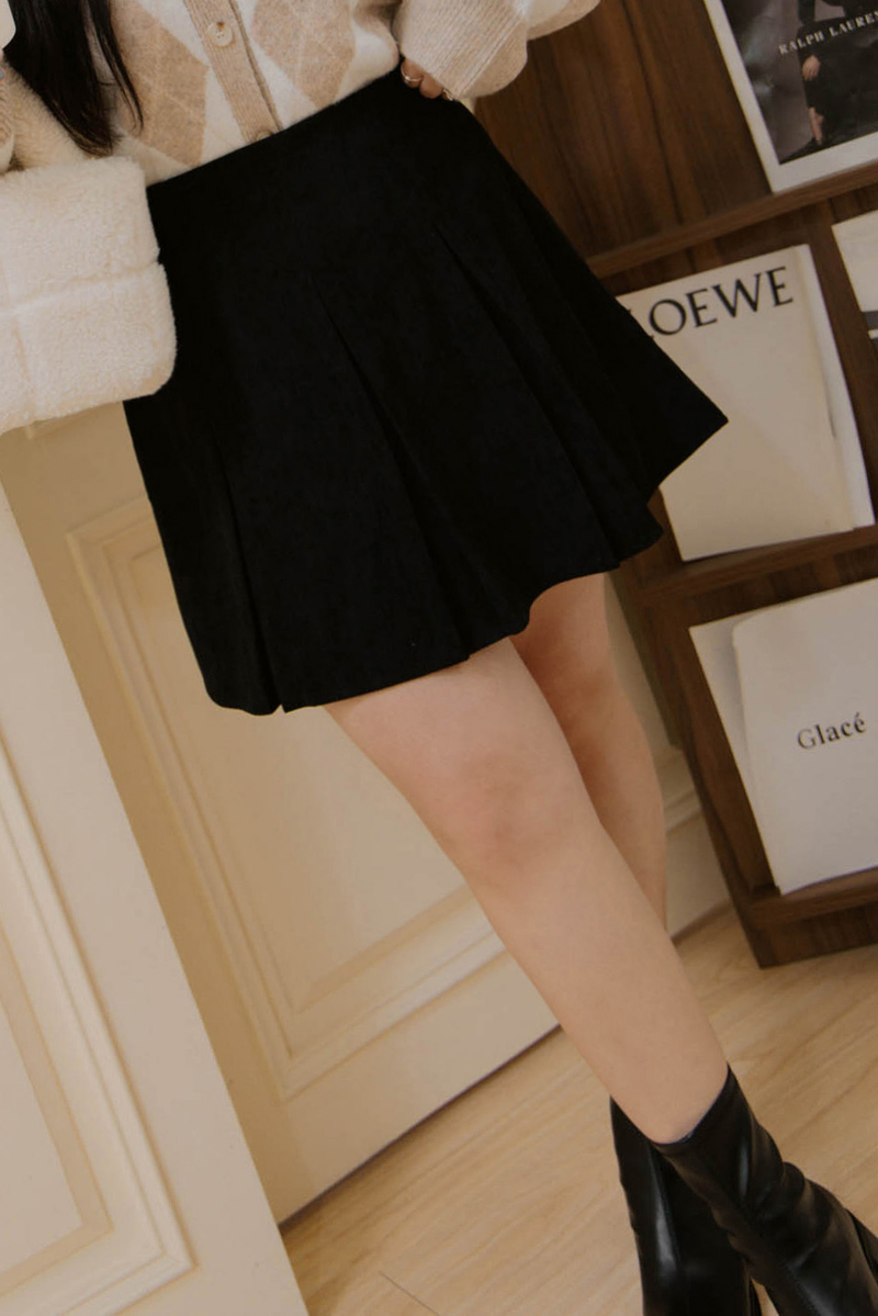 後鬆緊壓褶燈芯絨褲裙