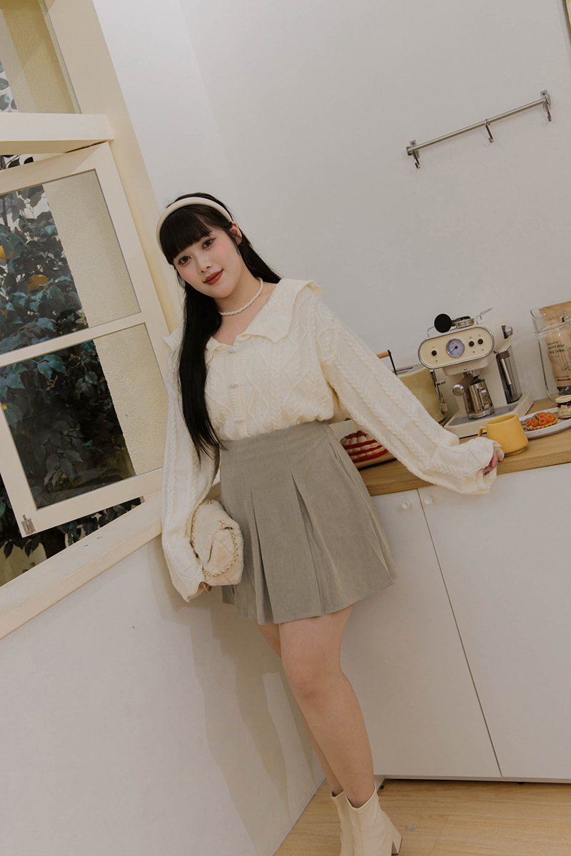 • 翻領麻花牛角扣針織毛衣