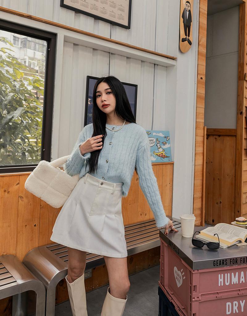 • 質感挺版燈心絨壓褶裙