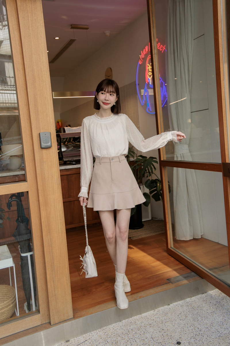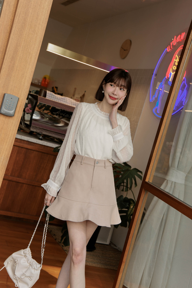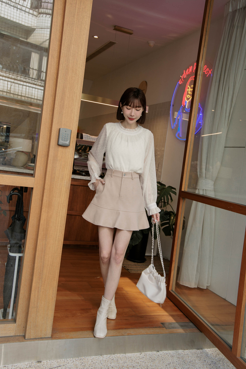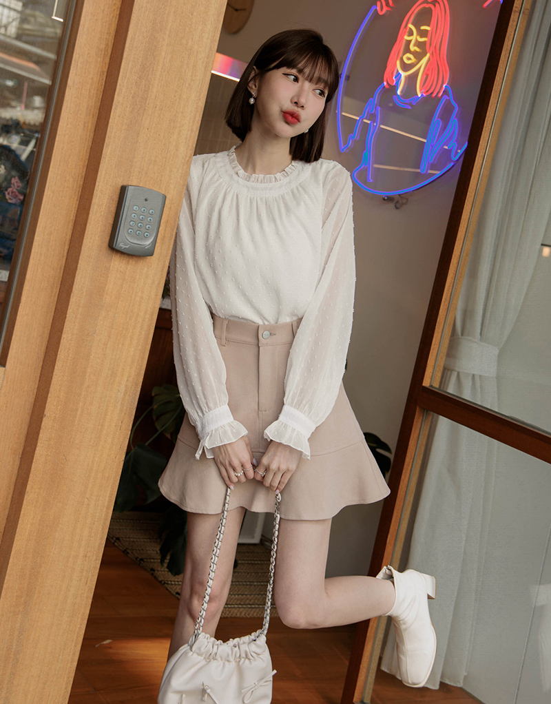 荷葉邊透膚雪紡紗上衣