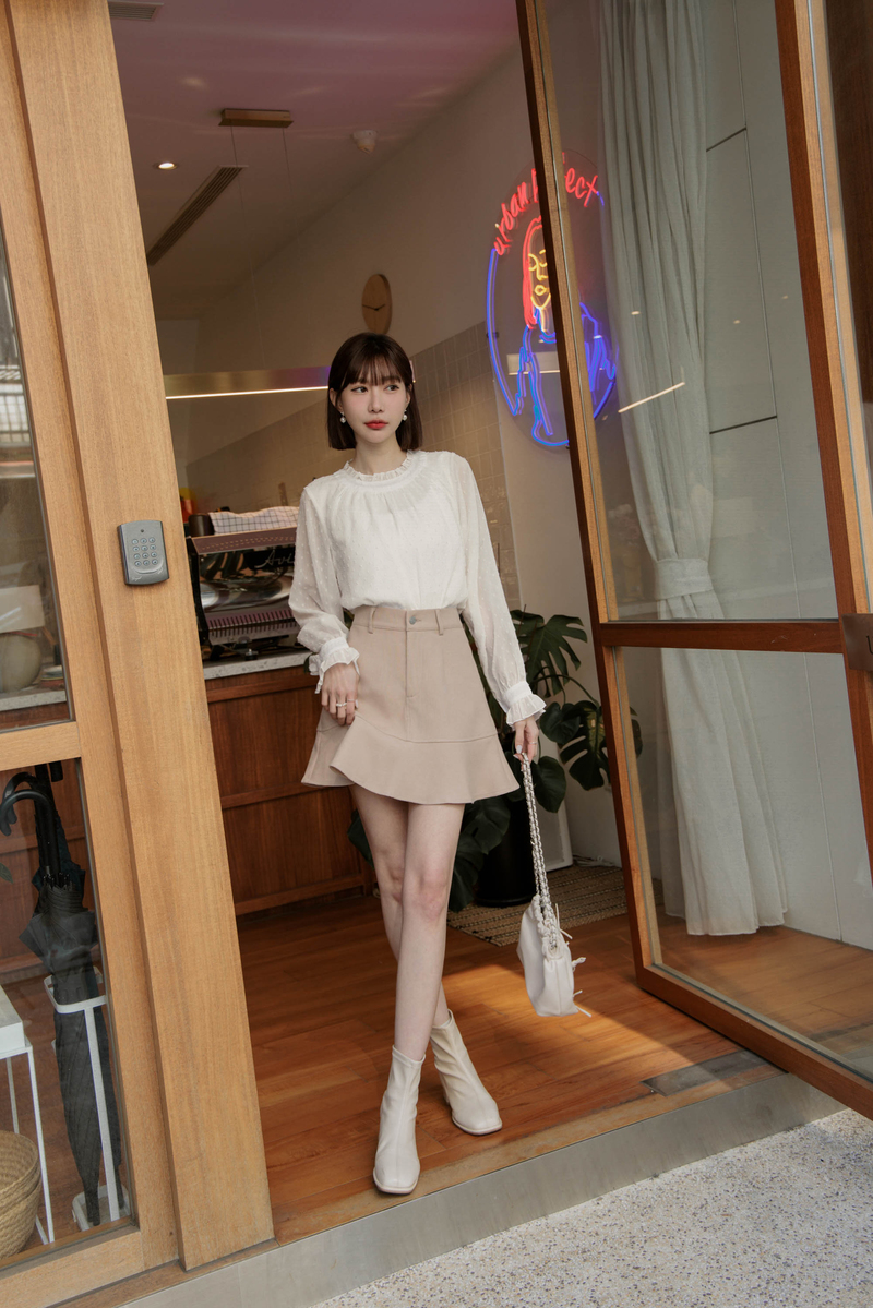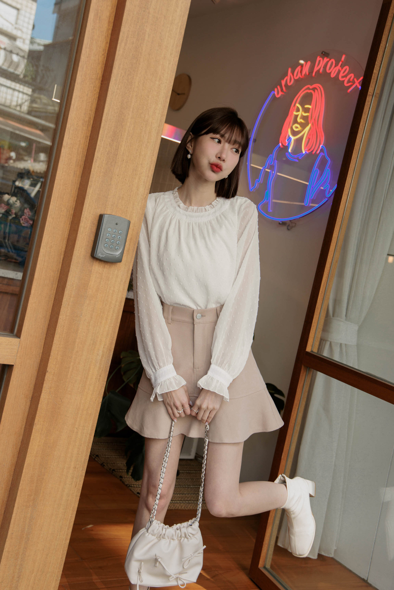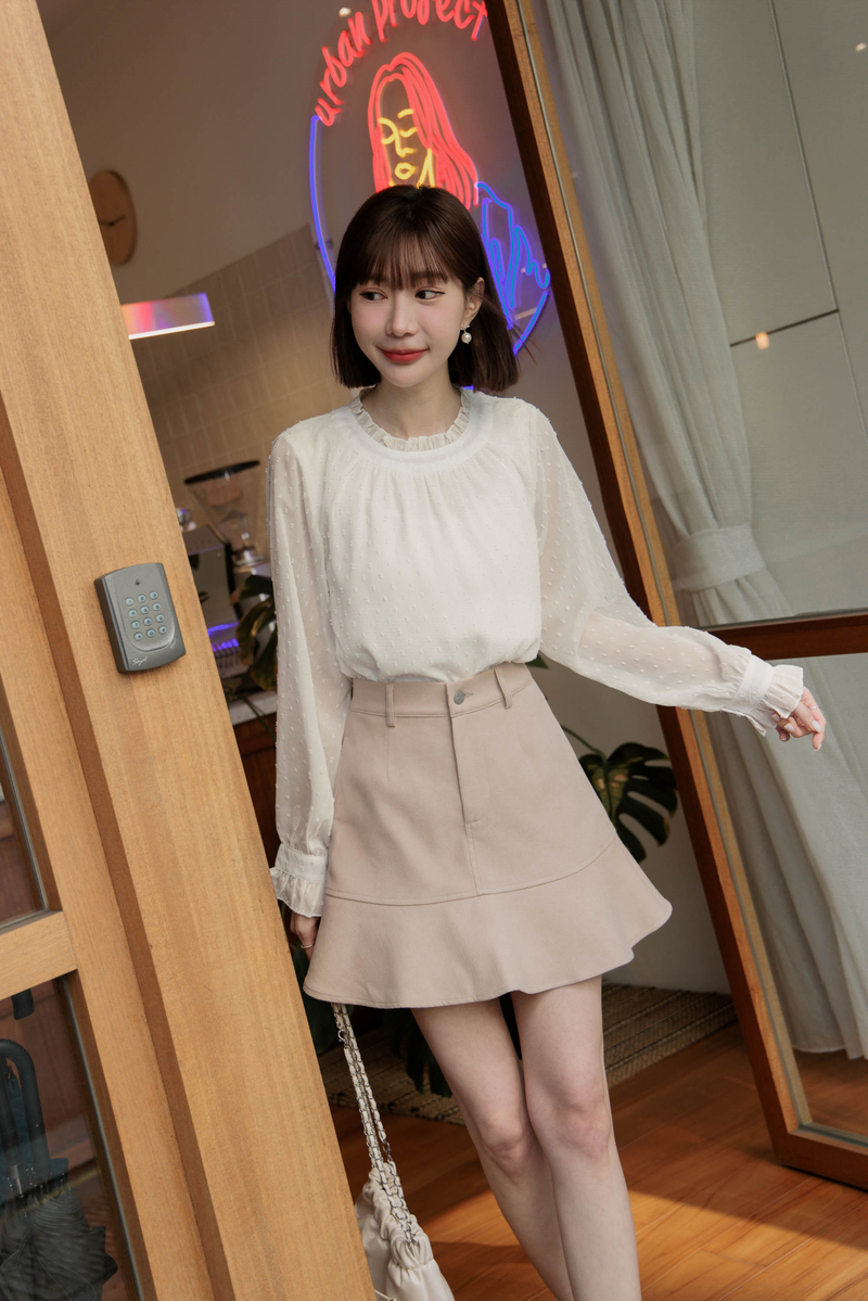 荷葉邊透膚雪紡紗上衣