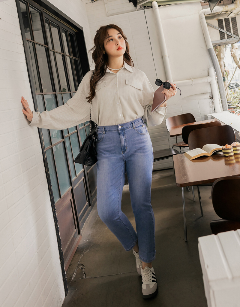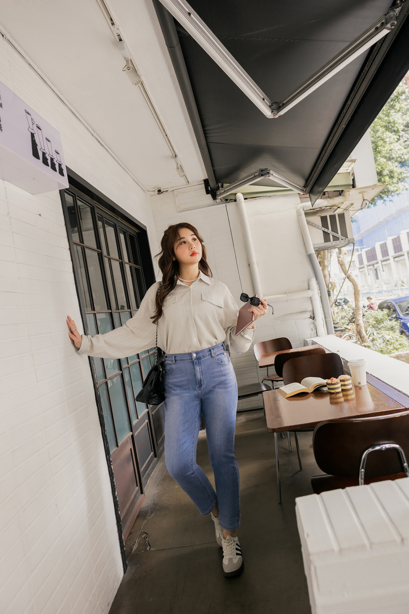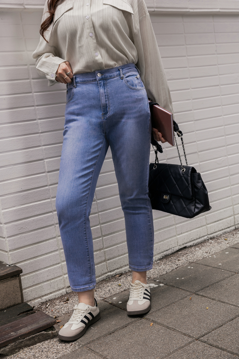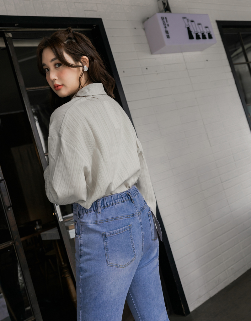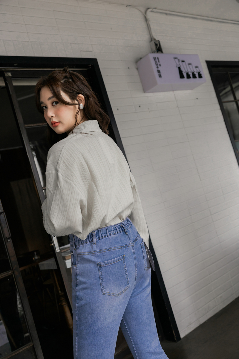 -5KG率性後鬆緊男友牛仔褲
