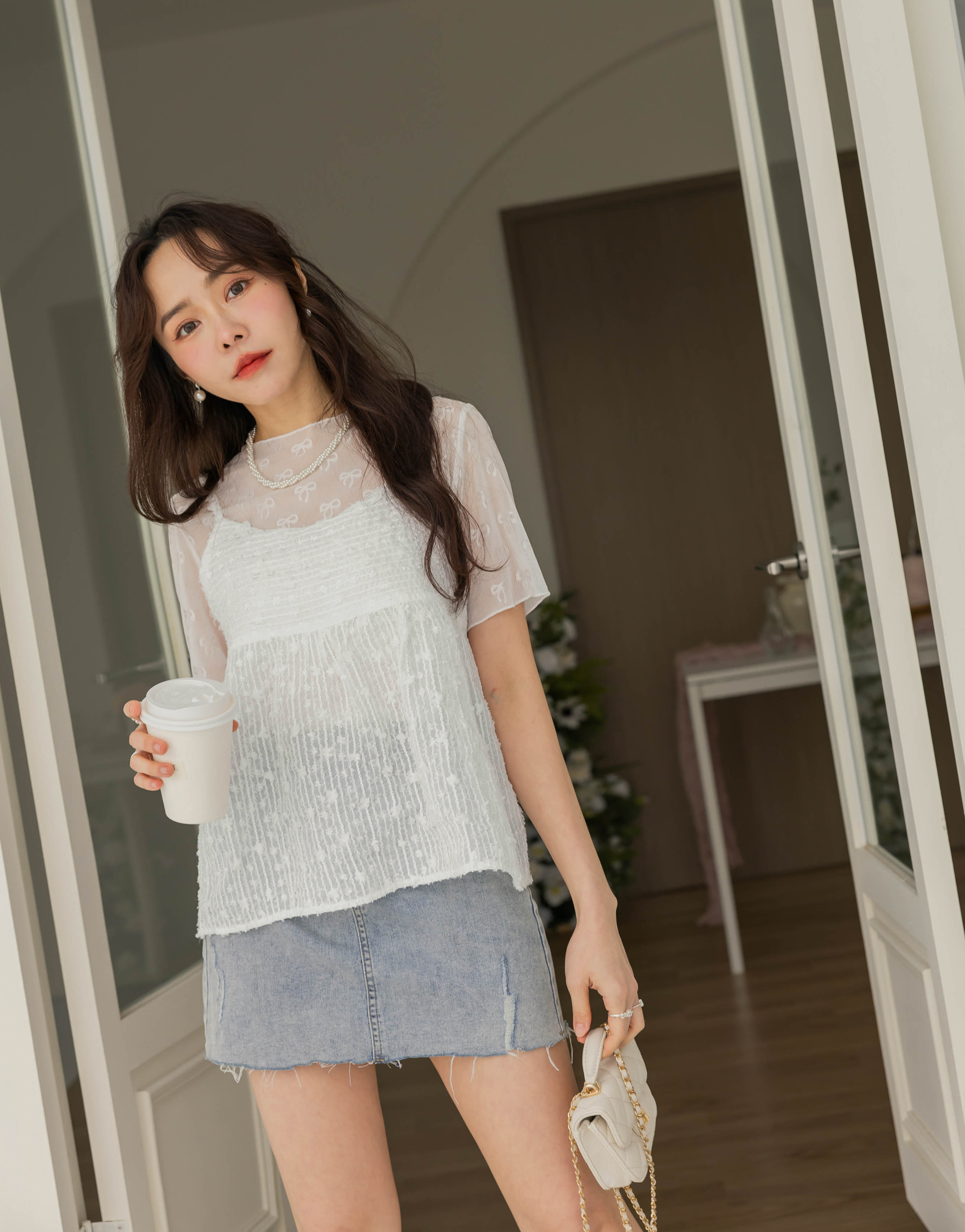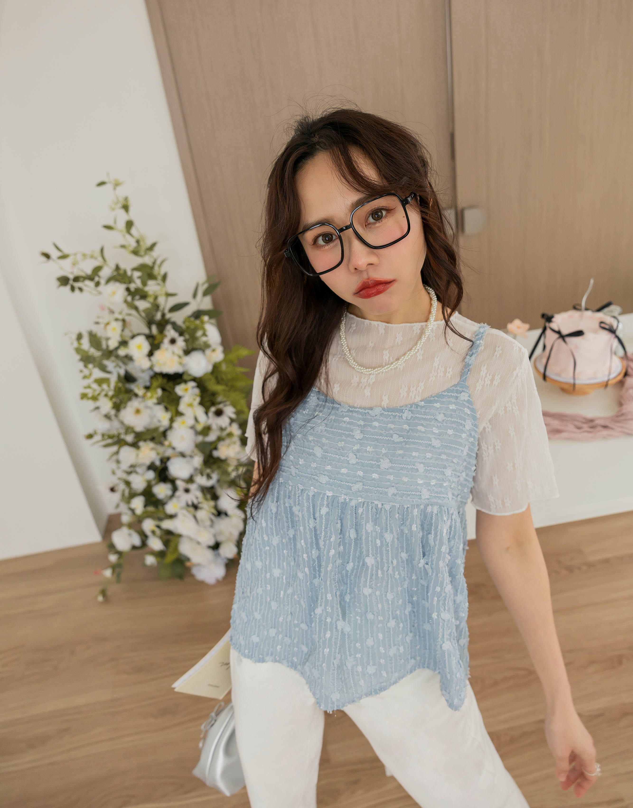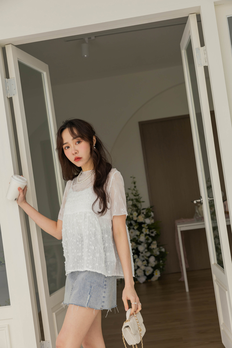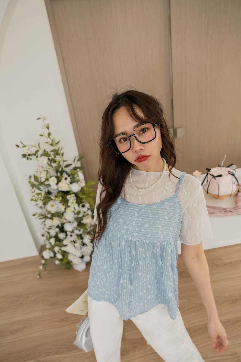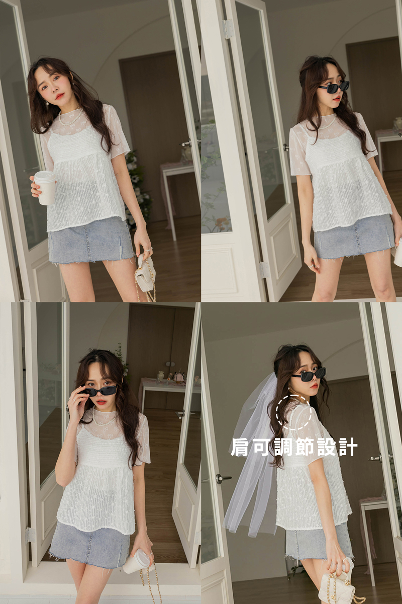 微甜透膚蕾絲彈性上衣