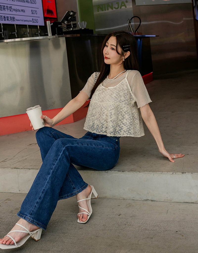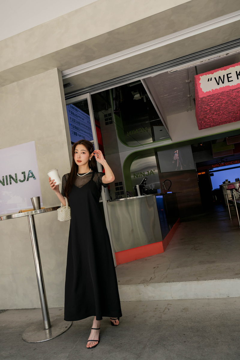 • -5KG肩可調-開岔抽鬚牛仔吊帶裙