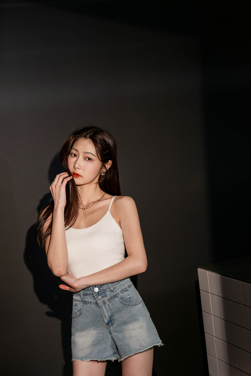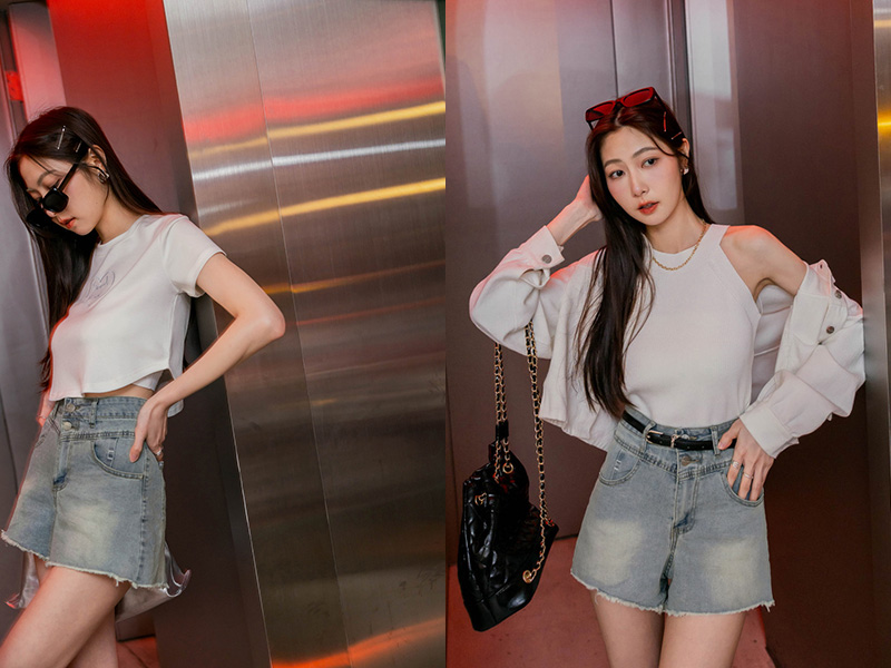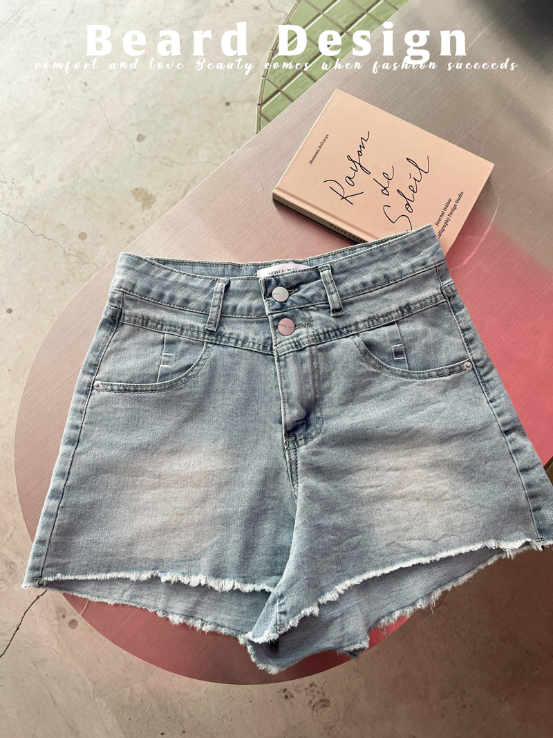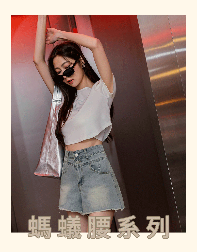 -5KG螞蟻腰系列-抽鬚雙釦牛仔短褲
