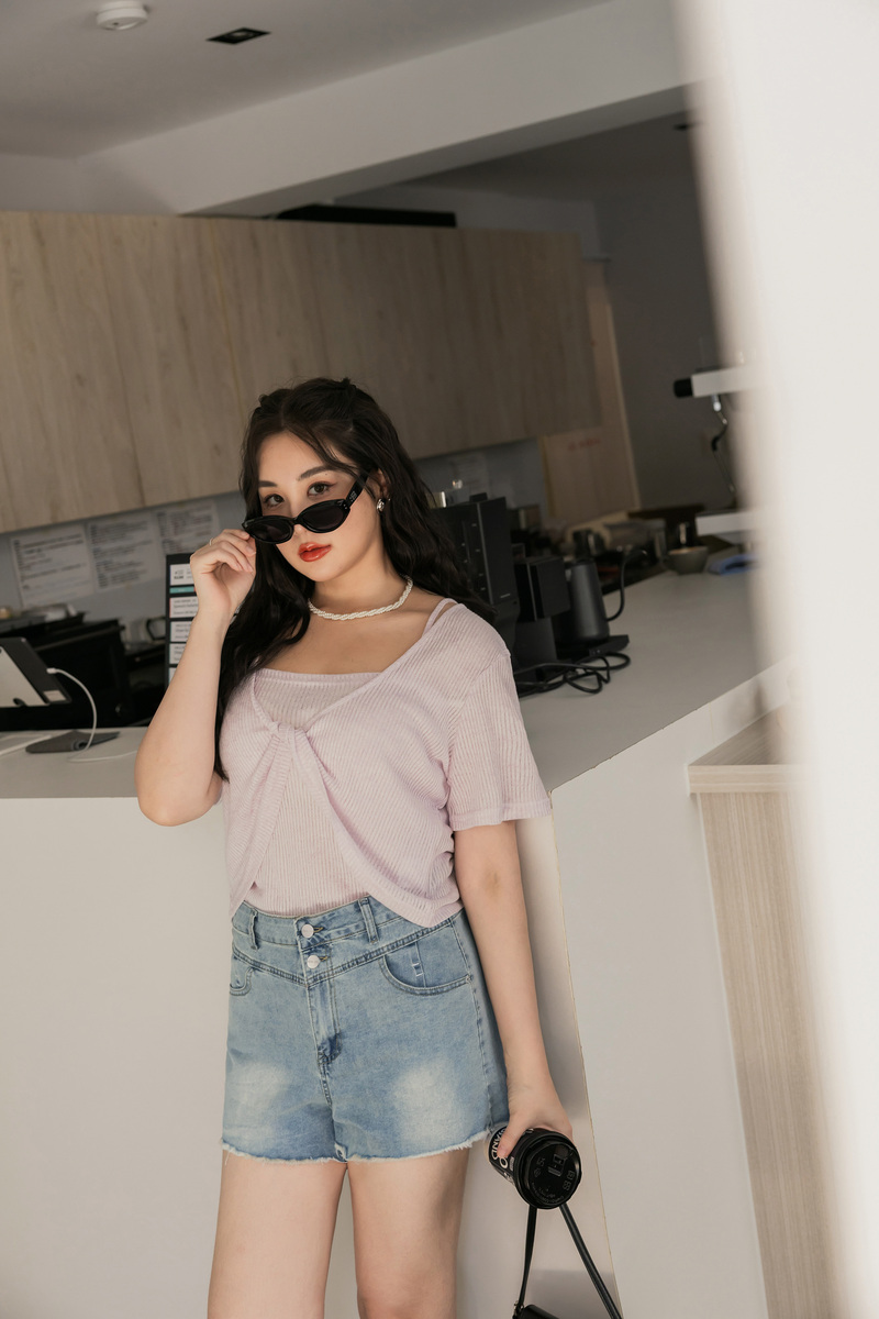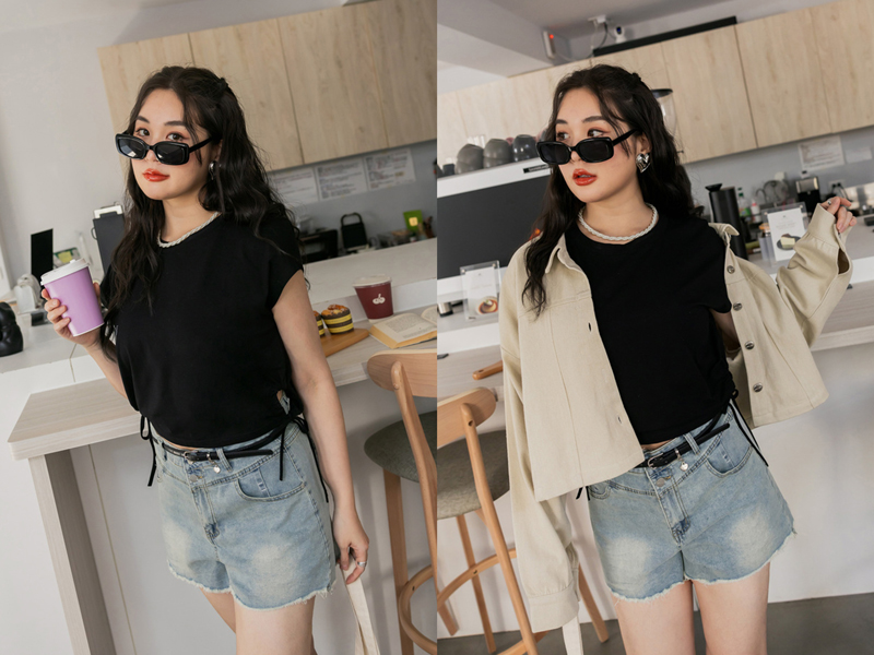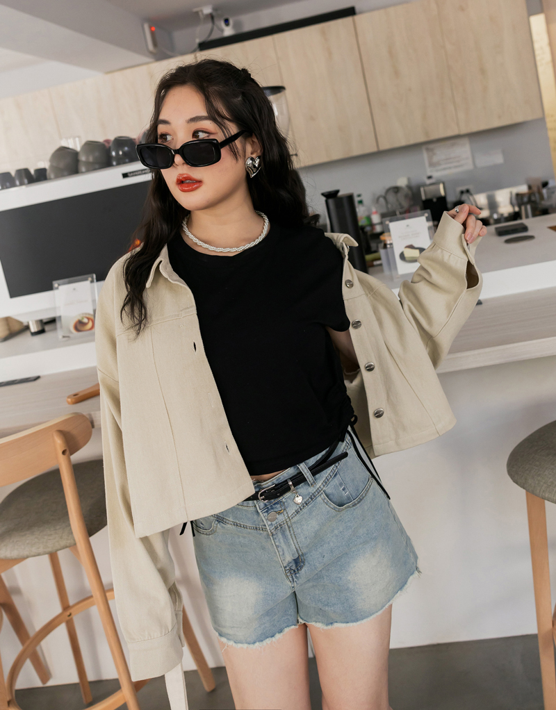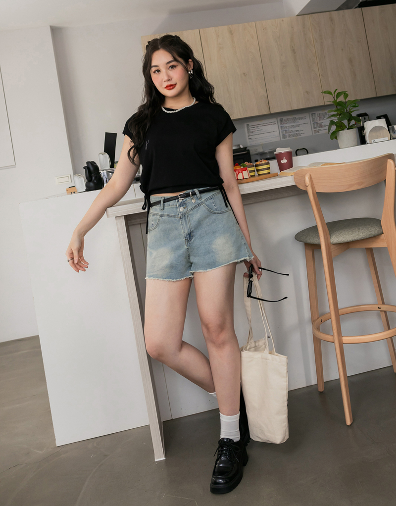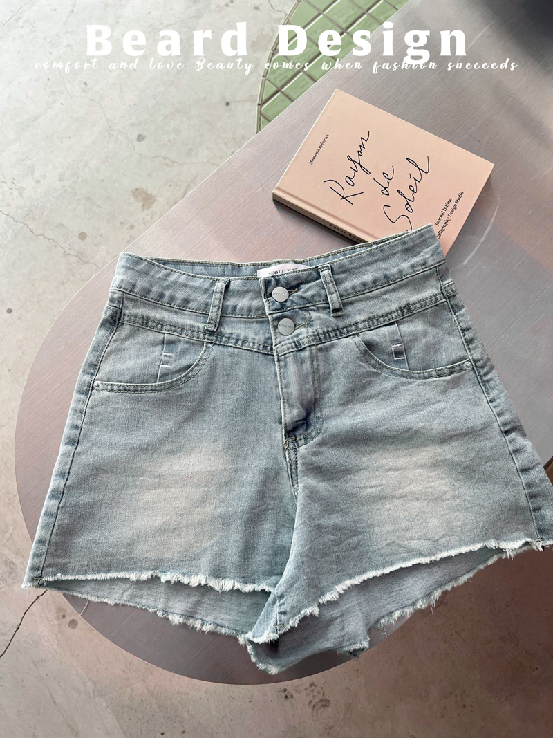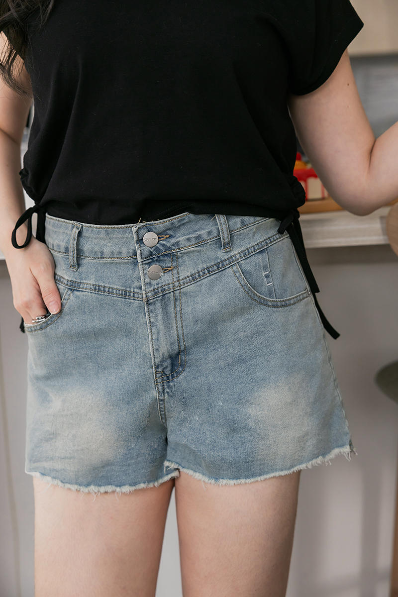 -5KG翹臀系列-抽鬚雙釦牛仔短褲