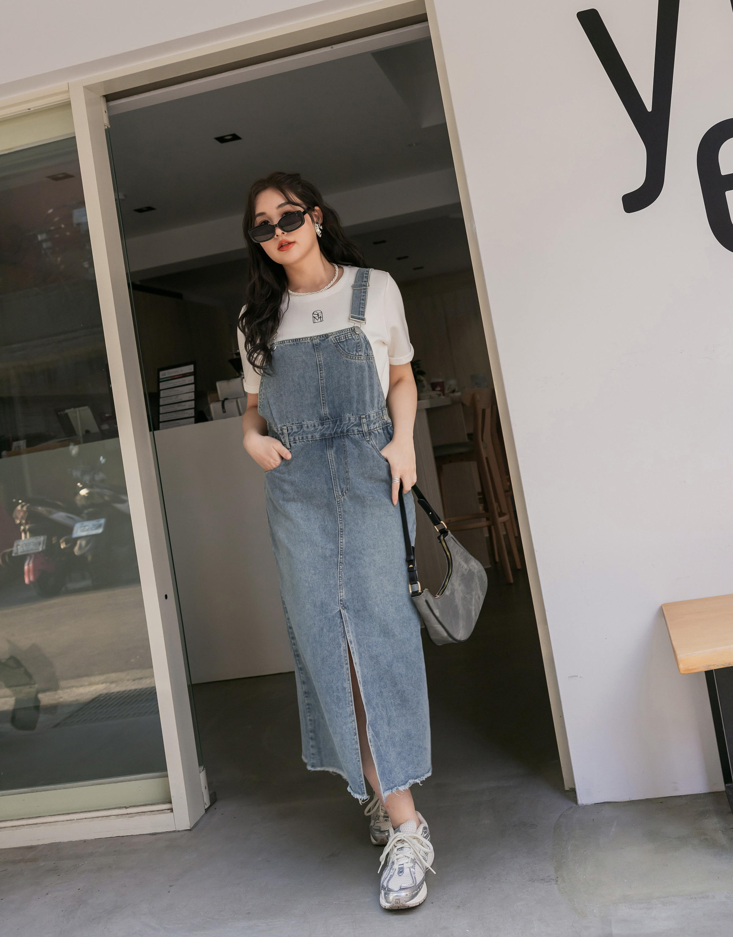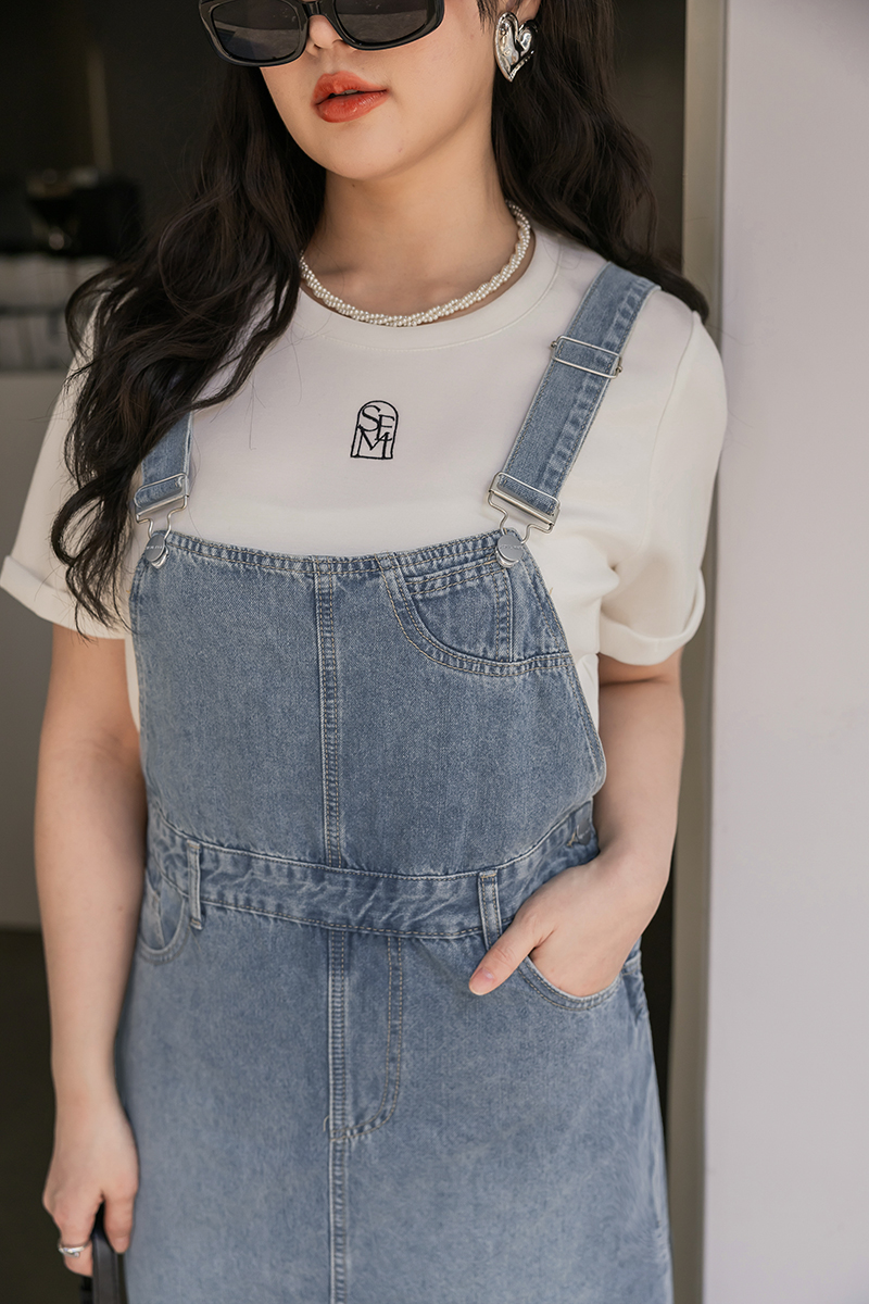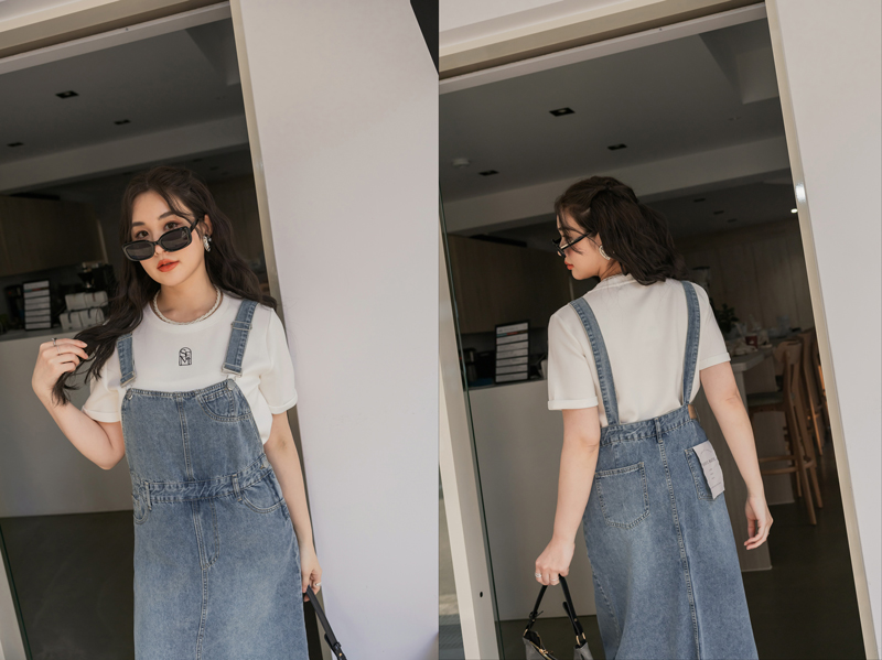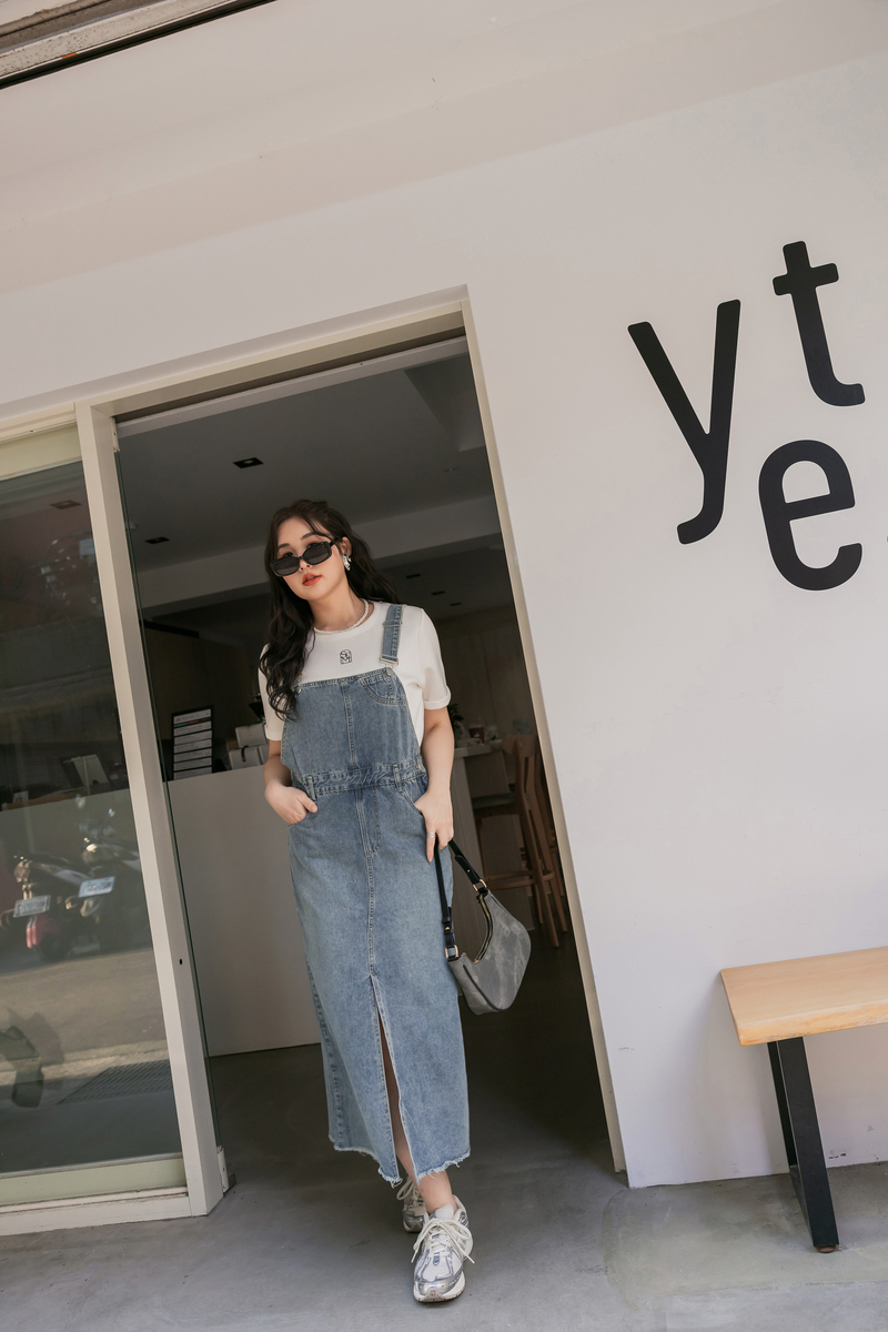 -5KG肩可調-開岔抽鬚牛仔吊帶裙