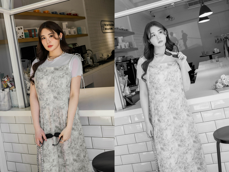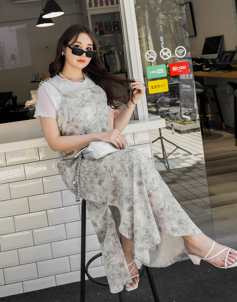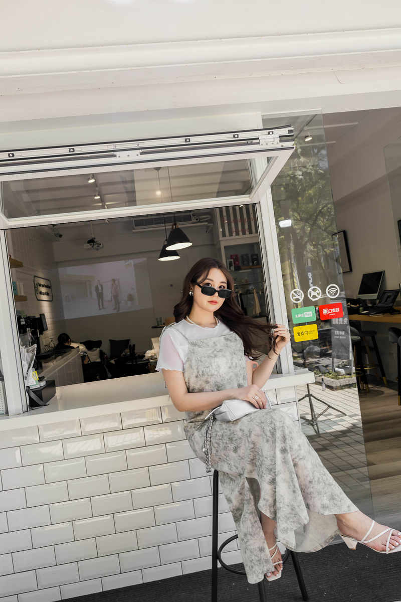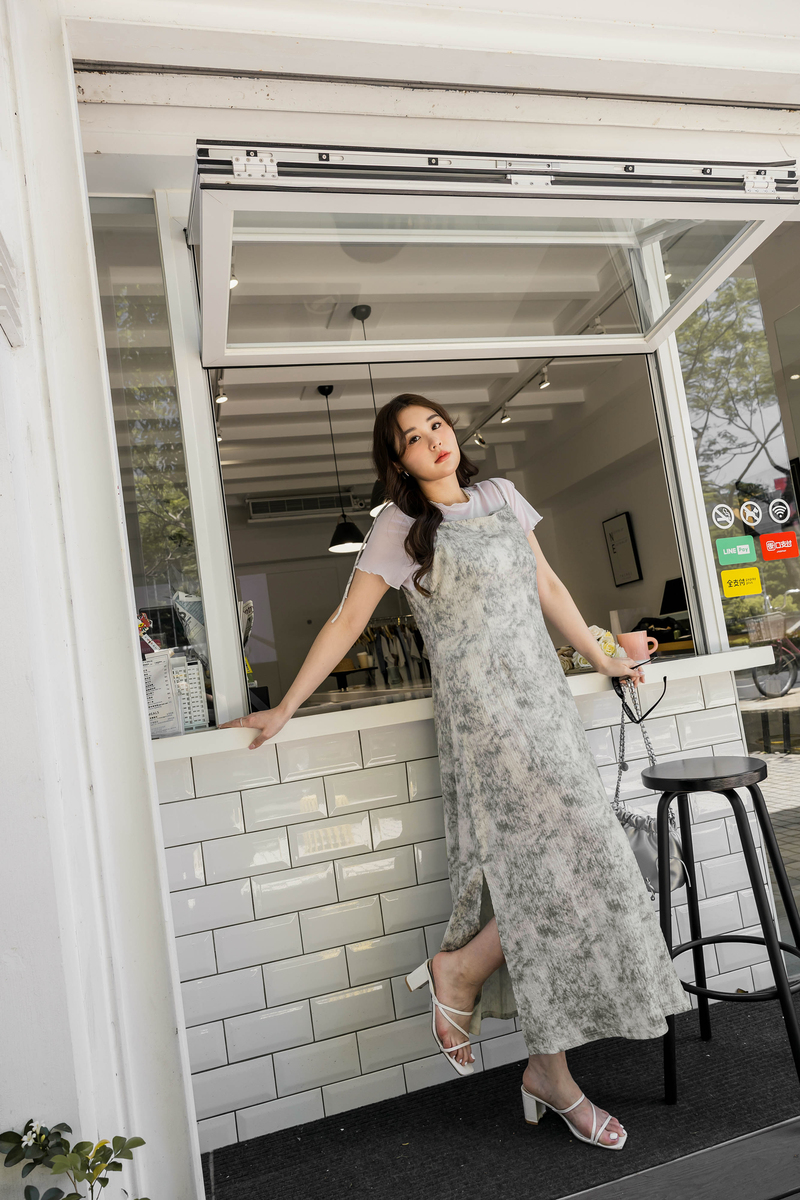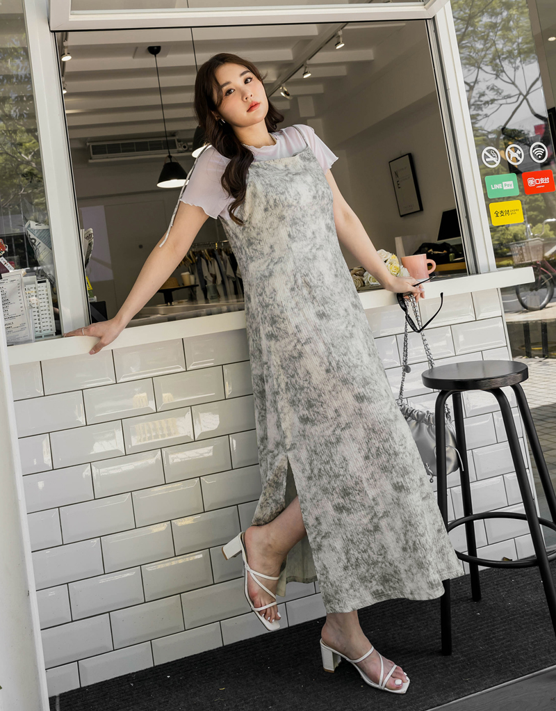 美腿系列-肩可調渲染壓紋開岔洋裝