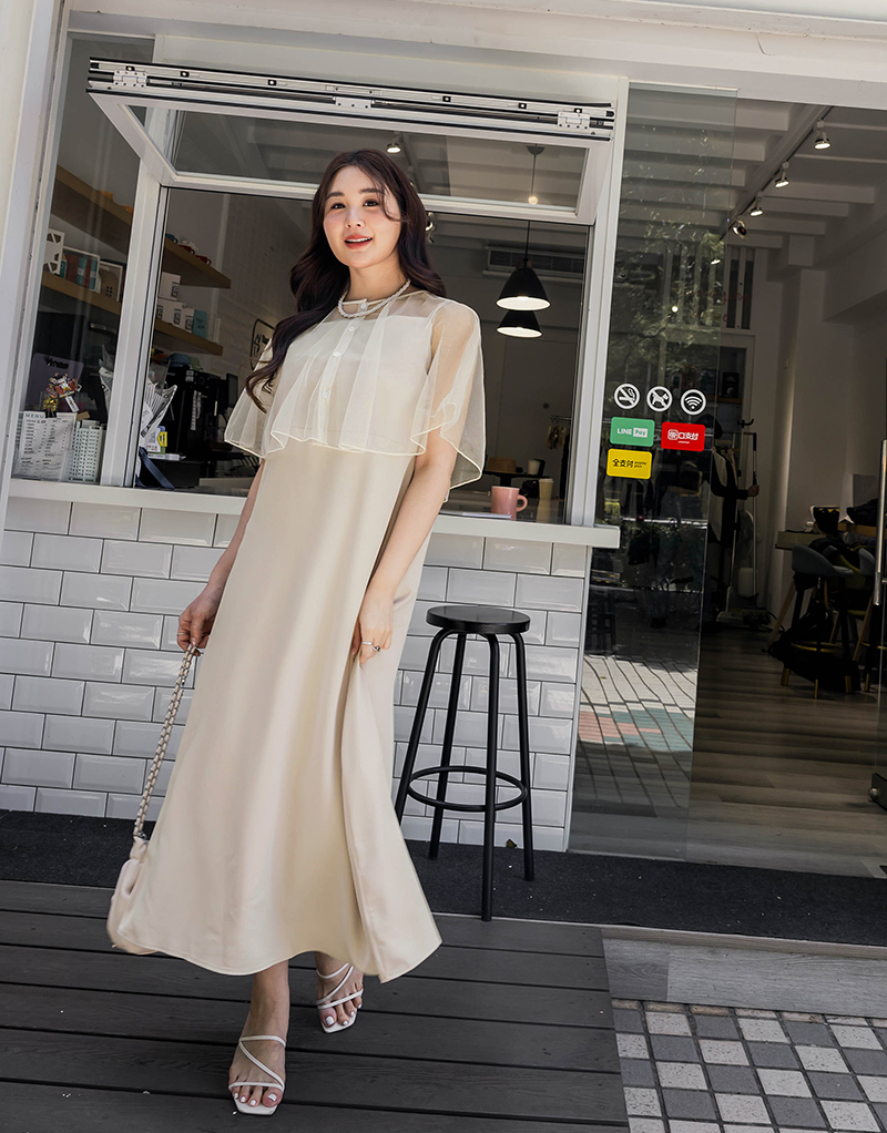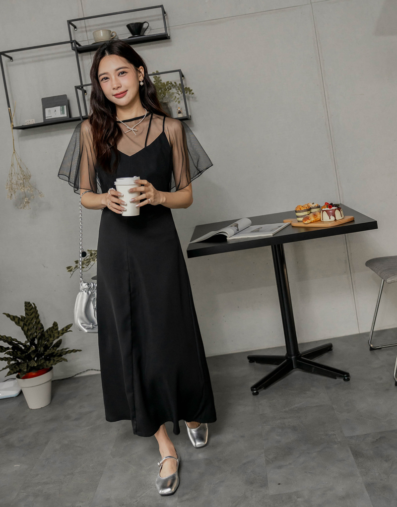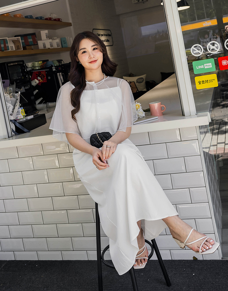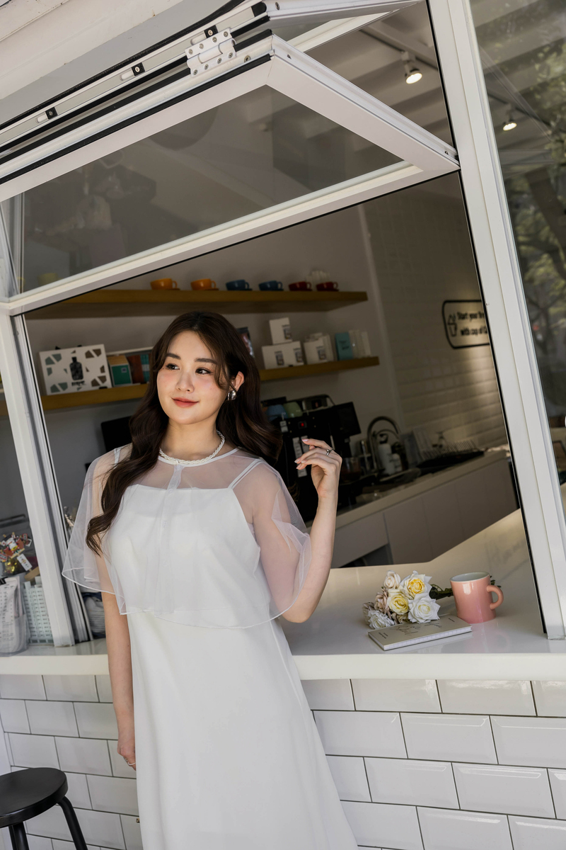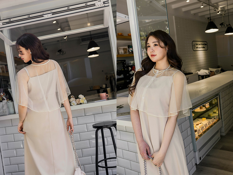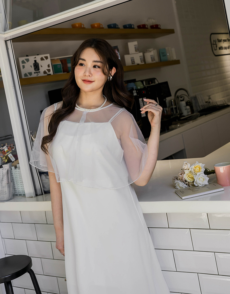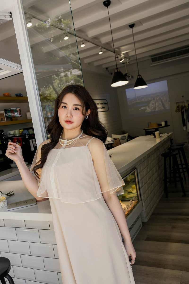 肩可調-女神質感雪紡洋裝