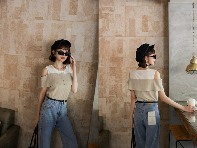 舒芙蕾系列-桃心領綁帶上衣