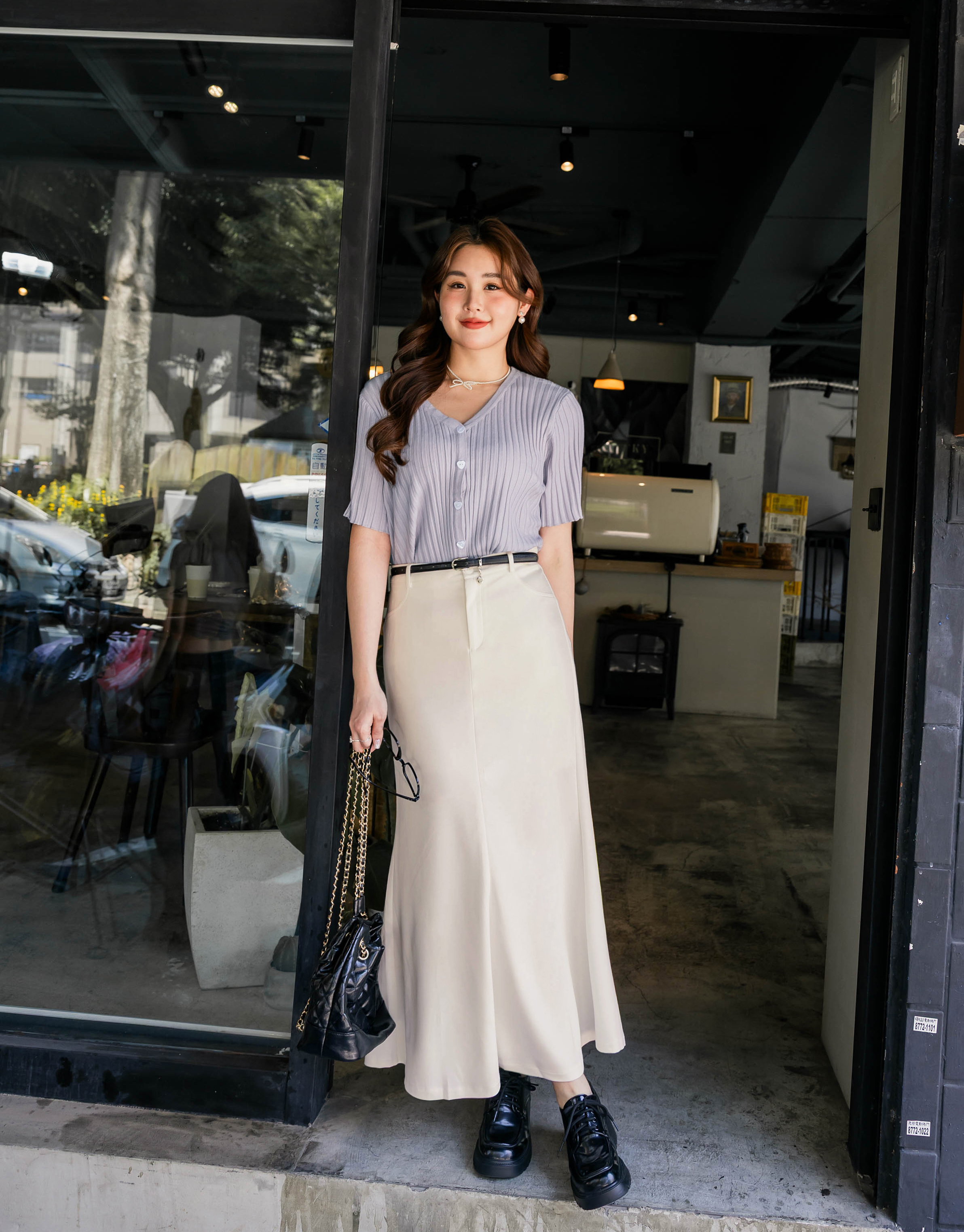 落地感的裙長讓妳一穿即有修長的身形比例~