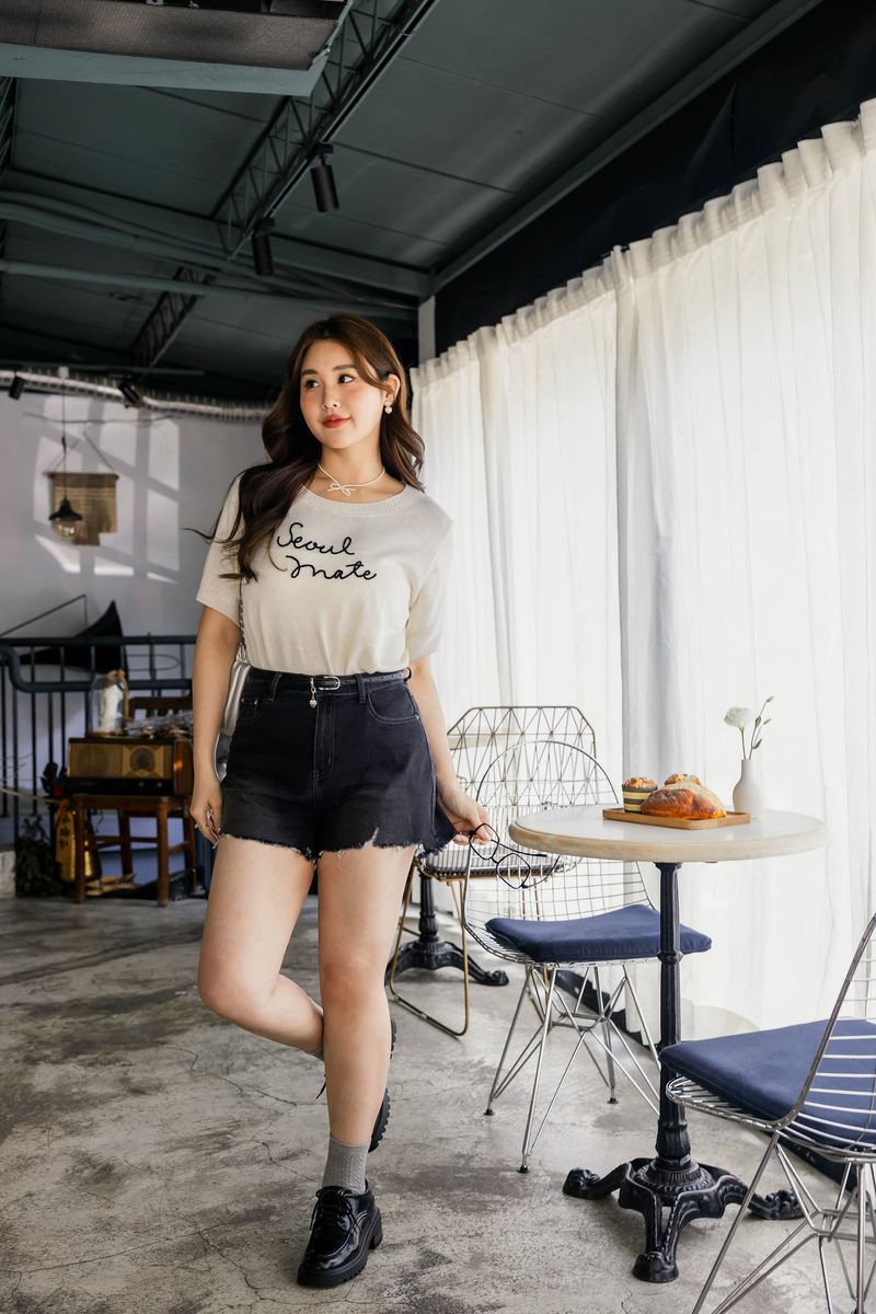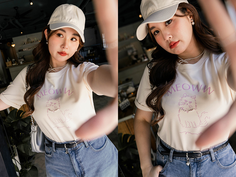• 舒芙蕾系列-貓咪釘珠柔滑上衣