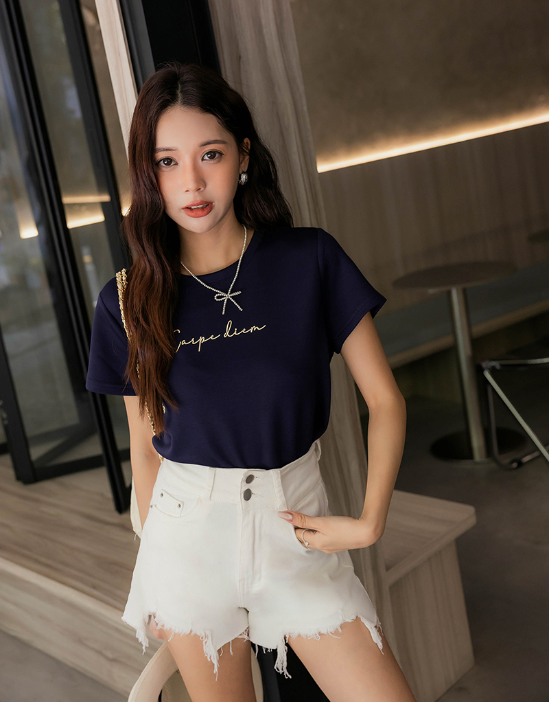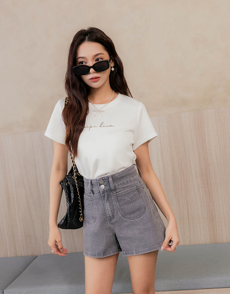 • -5KG翹臀褲系列-芝麻奶昔雙釦牛仔短褲