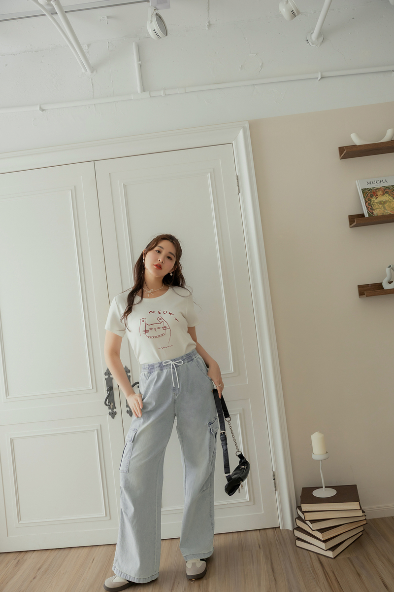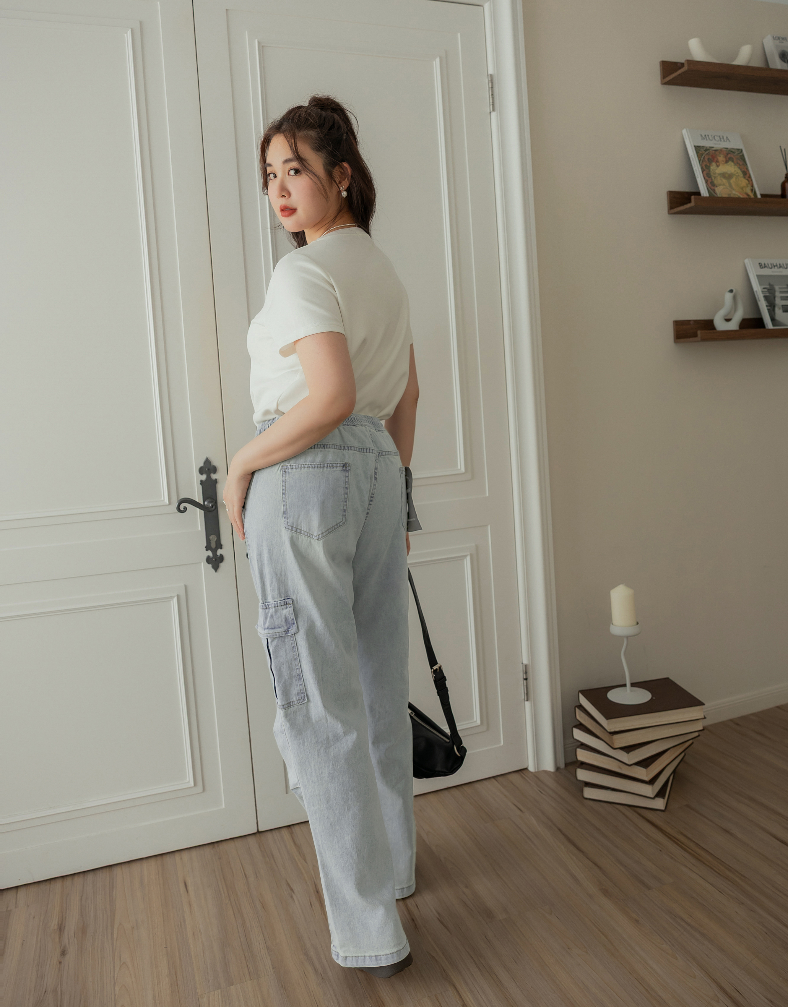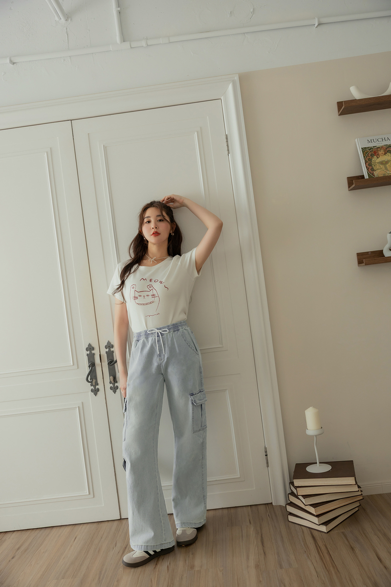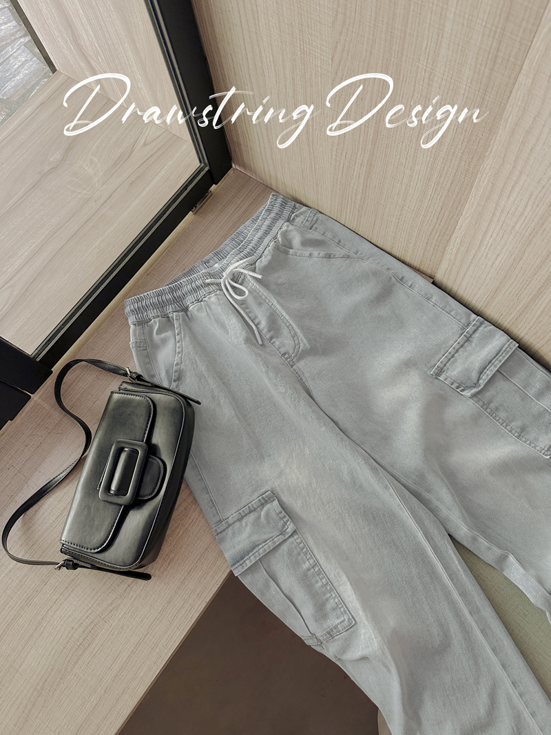 -5KG有型鬆緊腰綁帶工裝牛仔褲