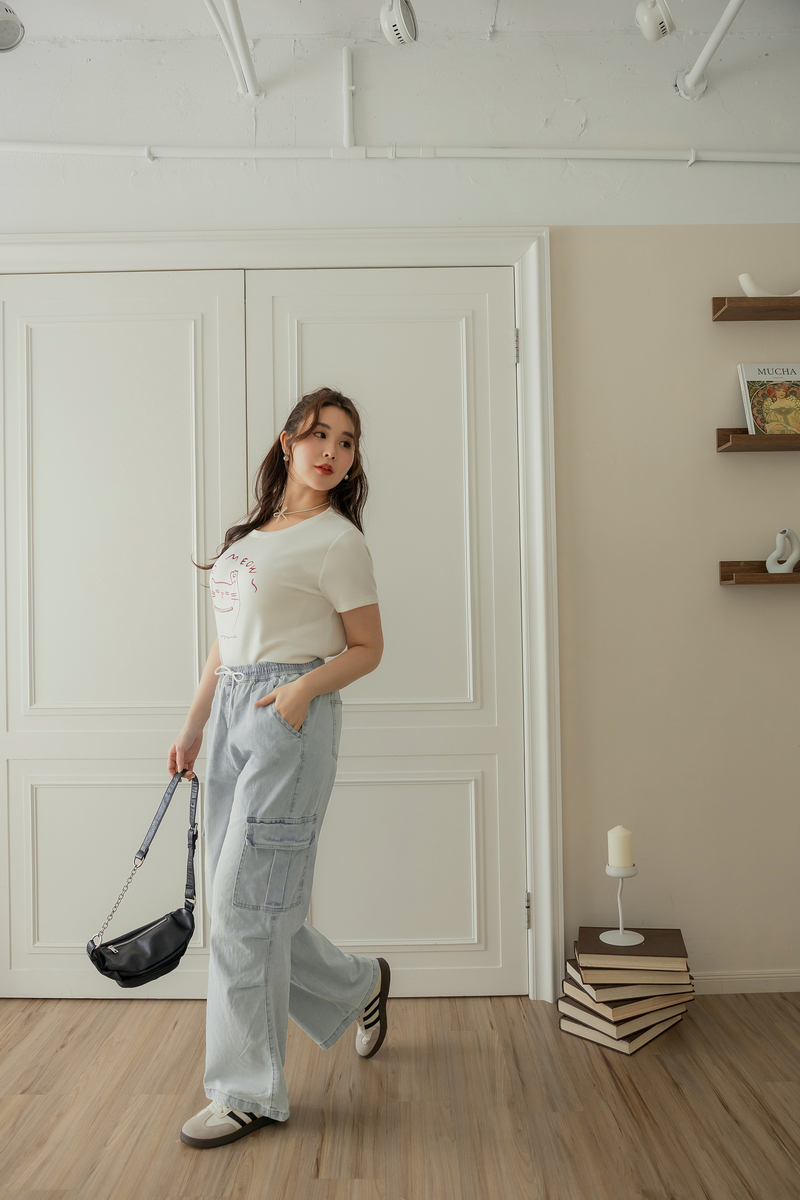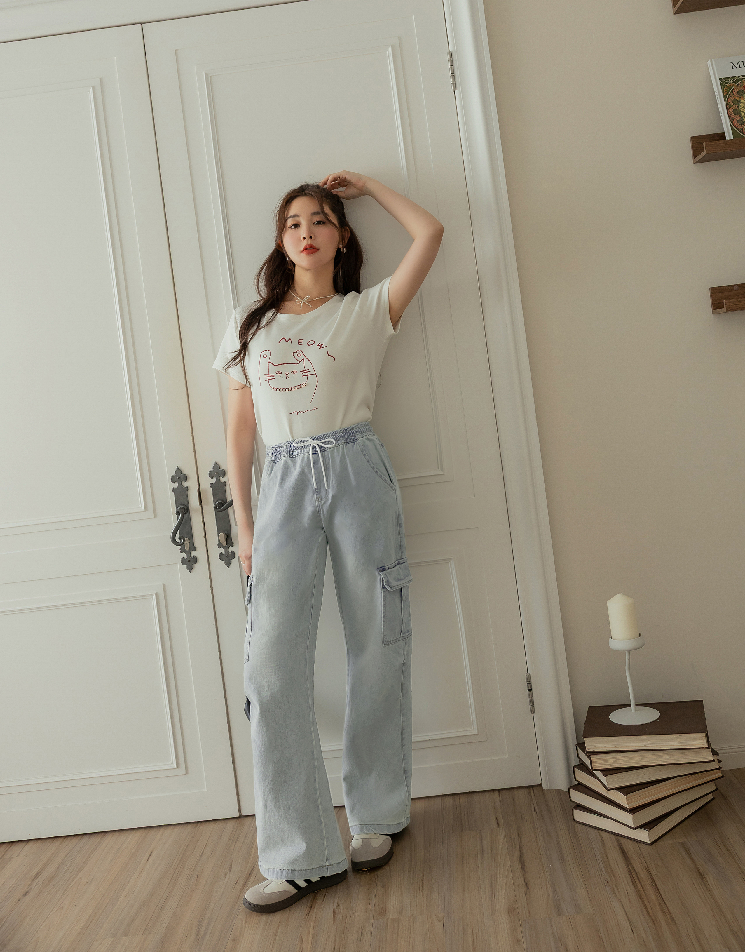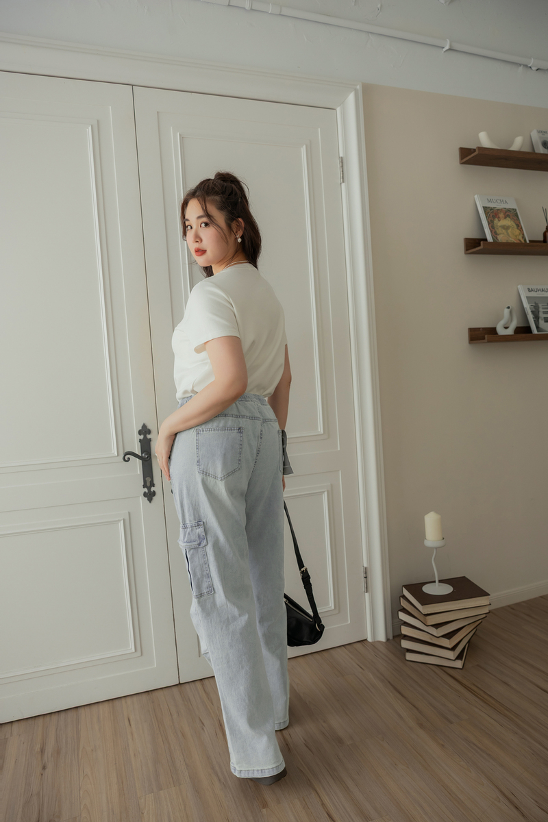 -5KG有型鬆緊腰綁帶工裝牛仔褲