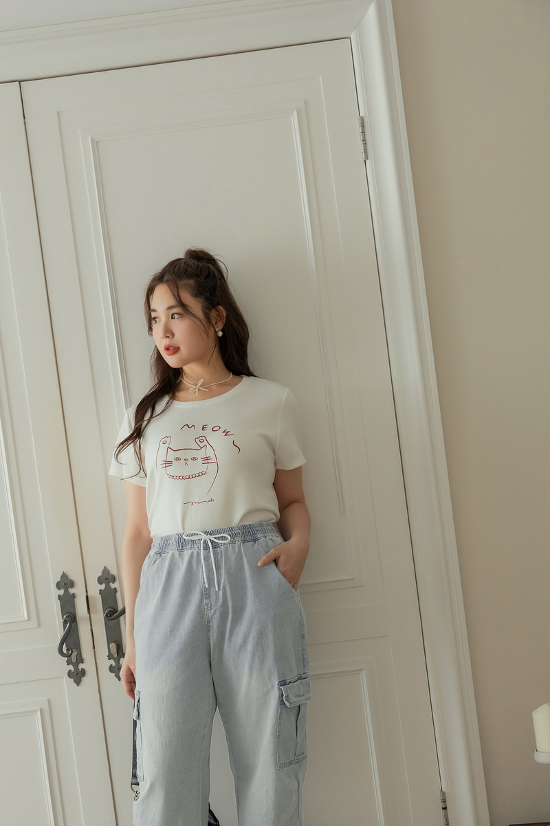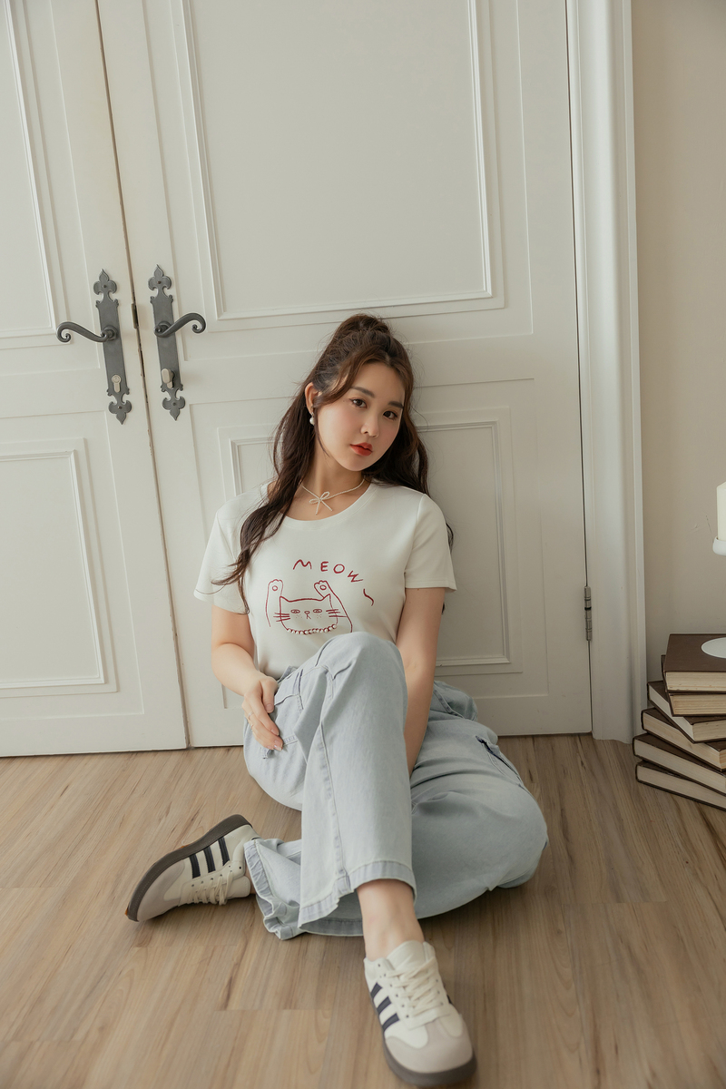 • 舒芙蕾系列-貓咪要投降釘珠上衣