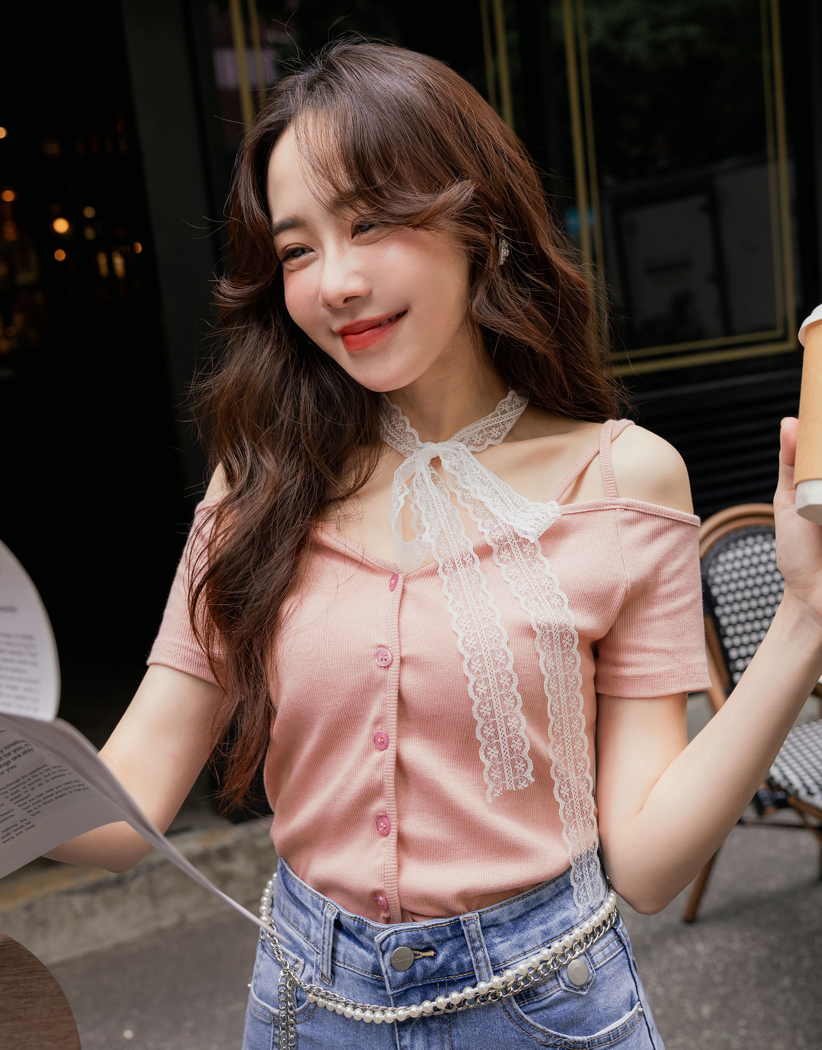 時髦交叉肩帶造型上衣