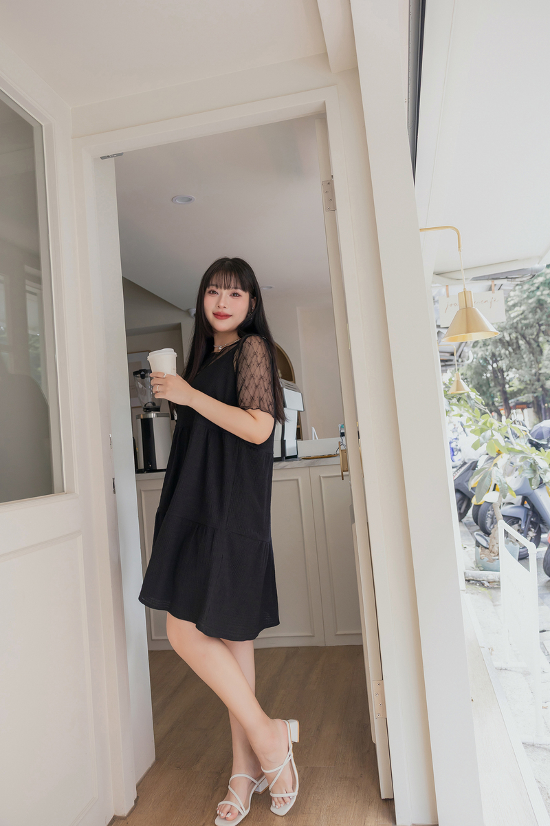舒芙蕾系列-V領性感開岔曲線洋裝
