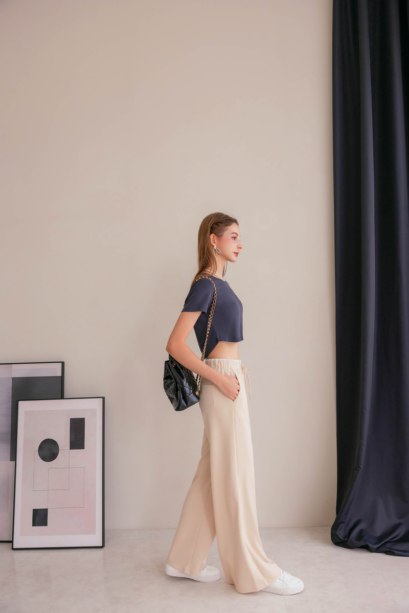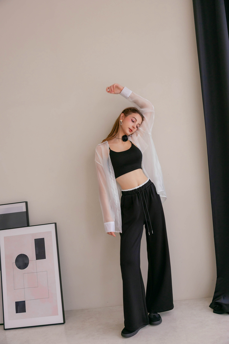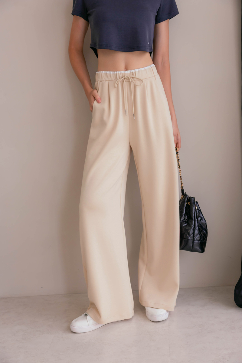 舒芙蕾雙色腰頭寬褲