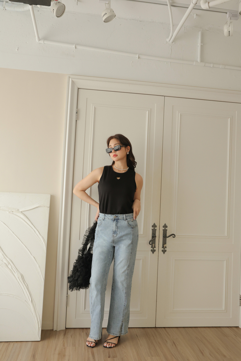 • -5KG顯瘦車線開衩小喇叭牛仔褲