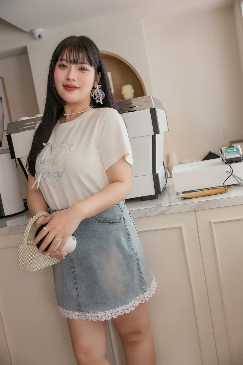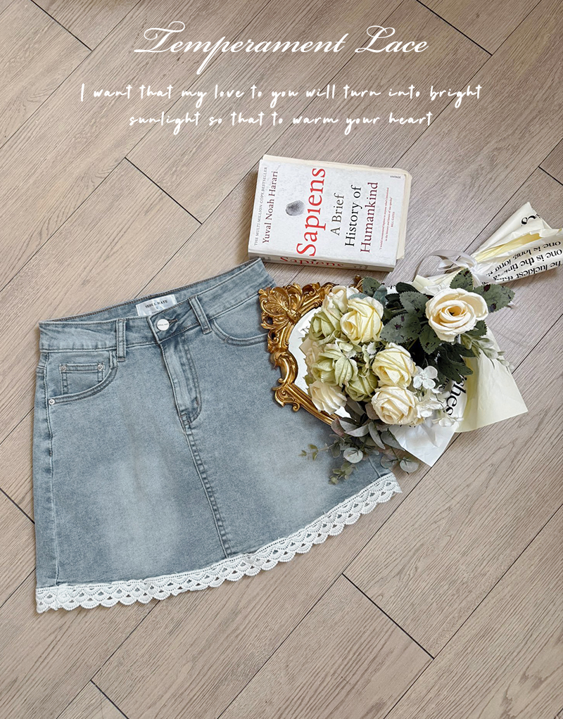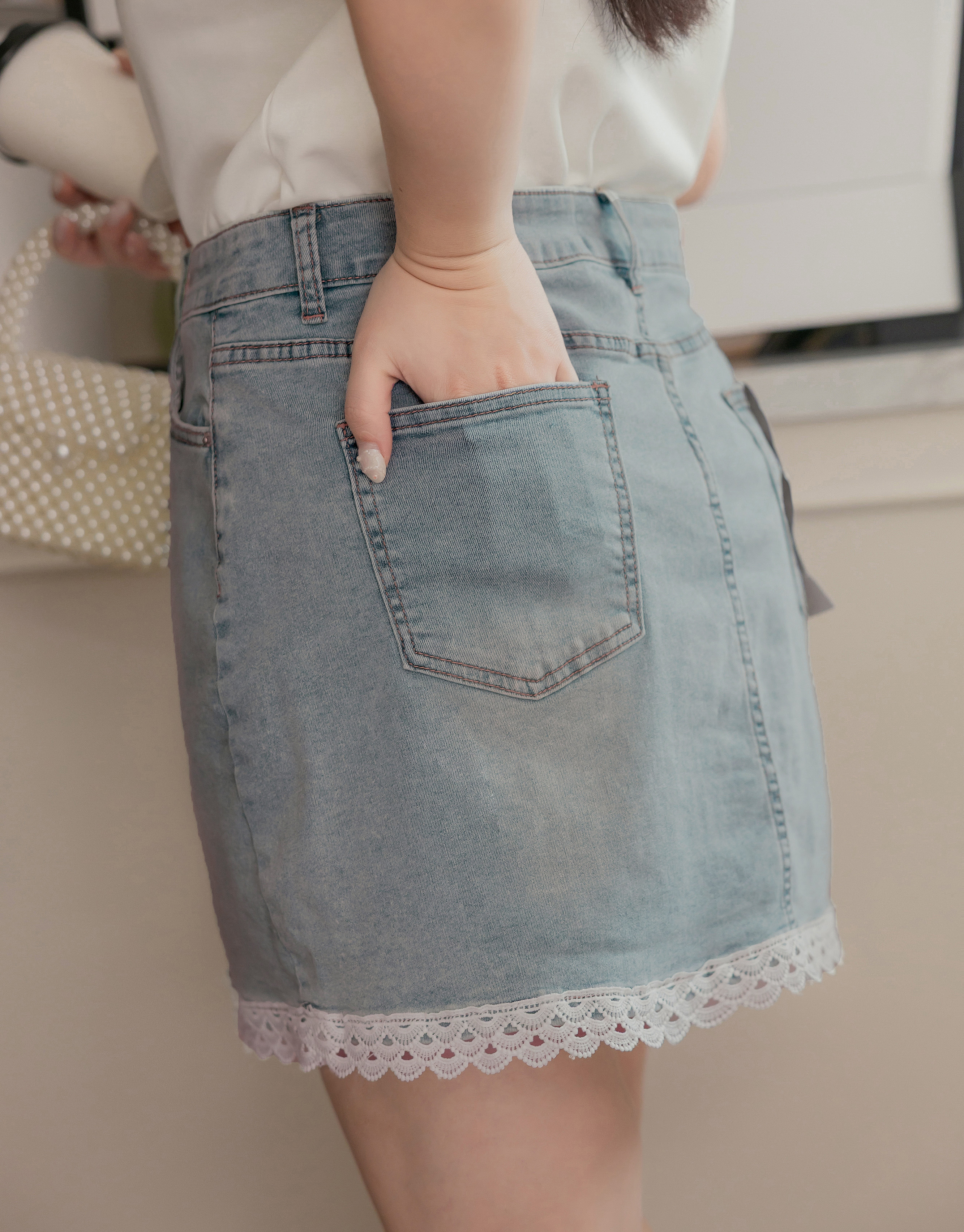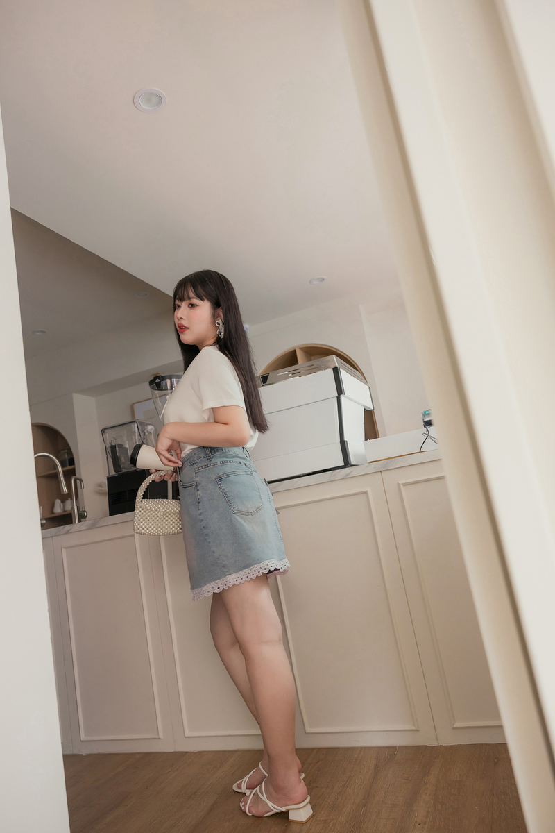 -5KG甜甜蕾絲滾邊牛仔褲裙