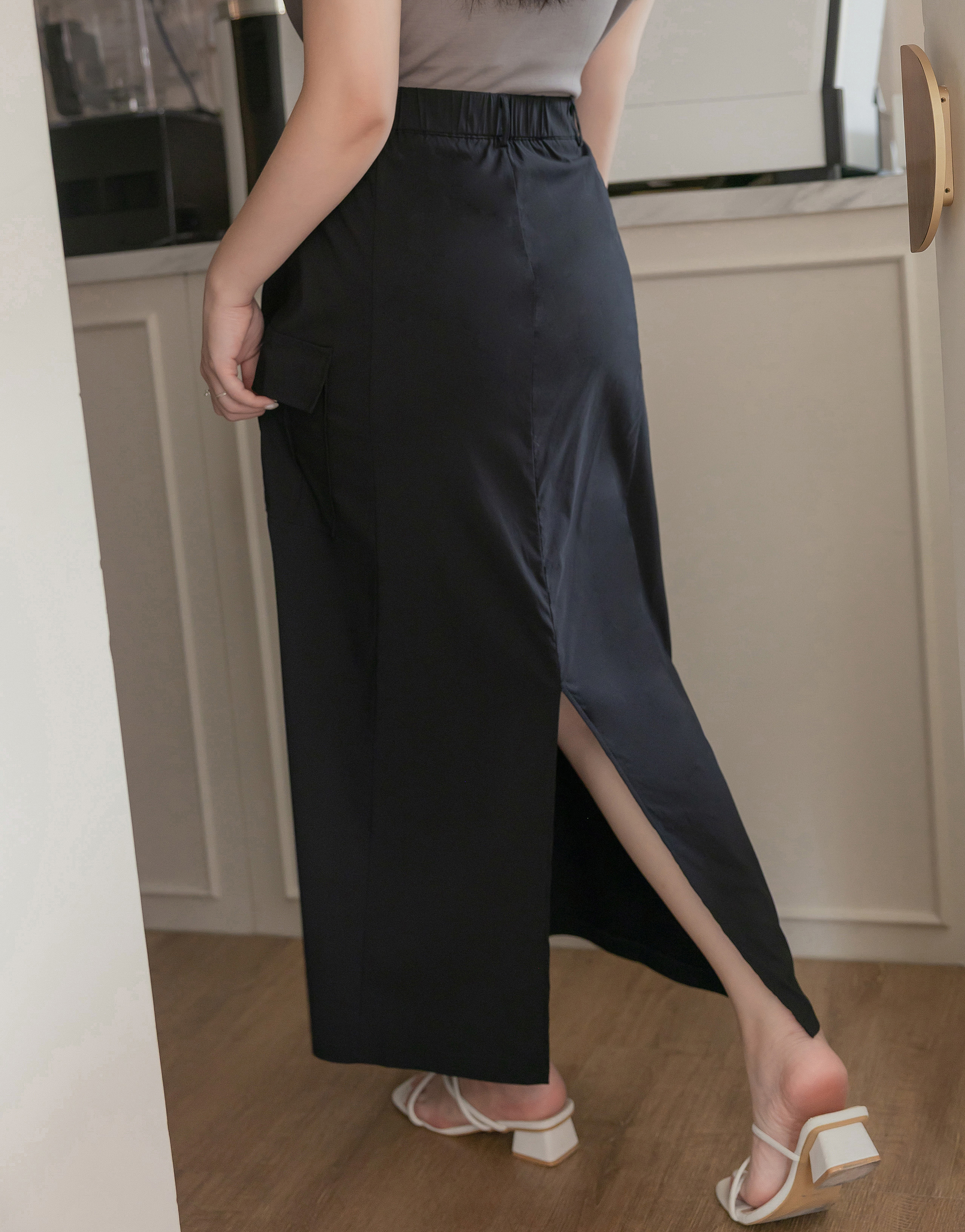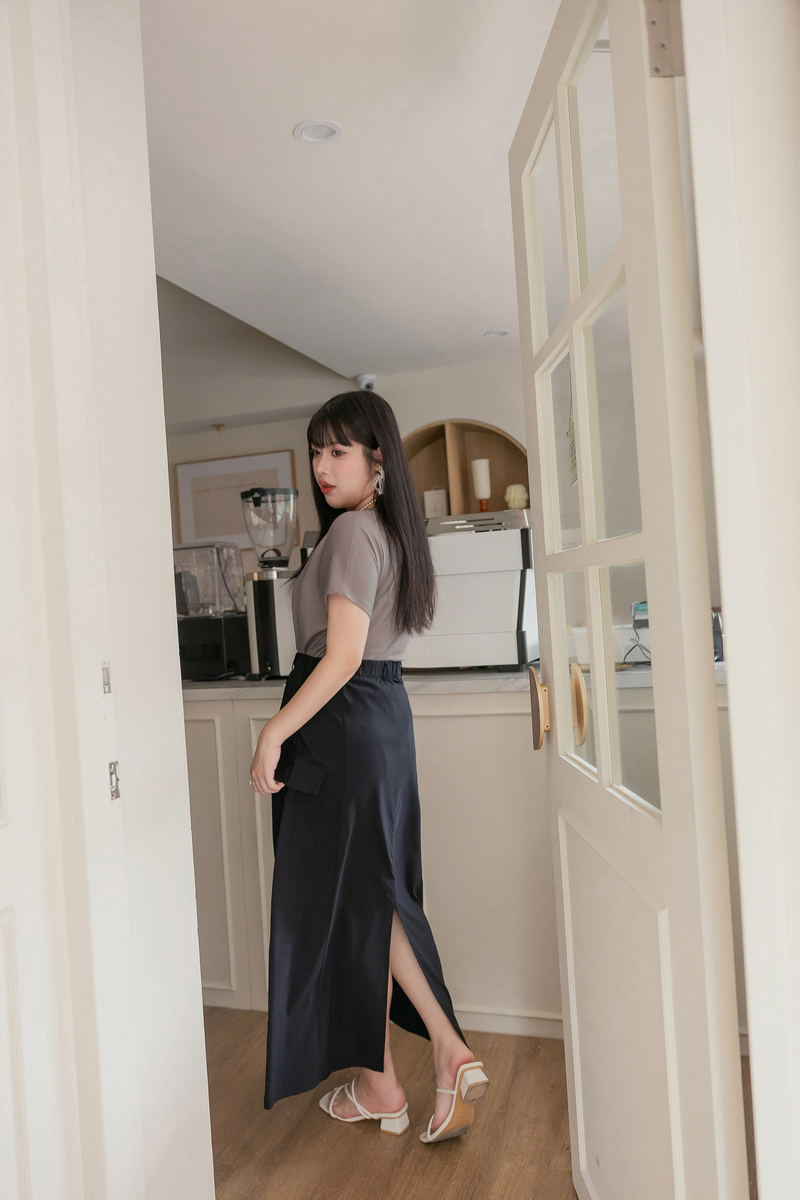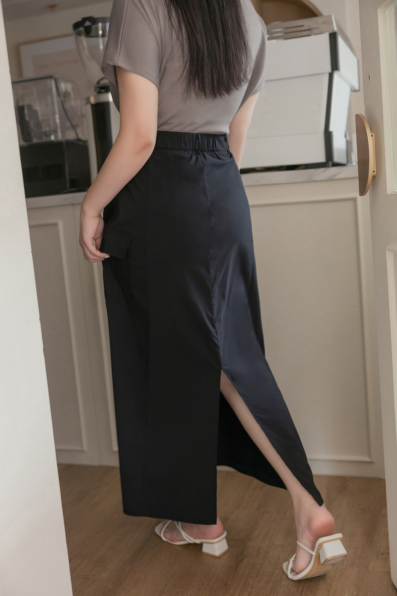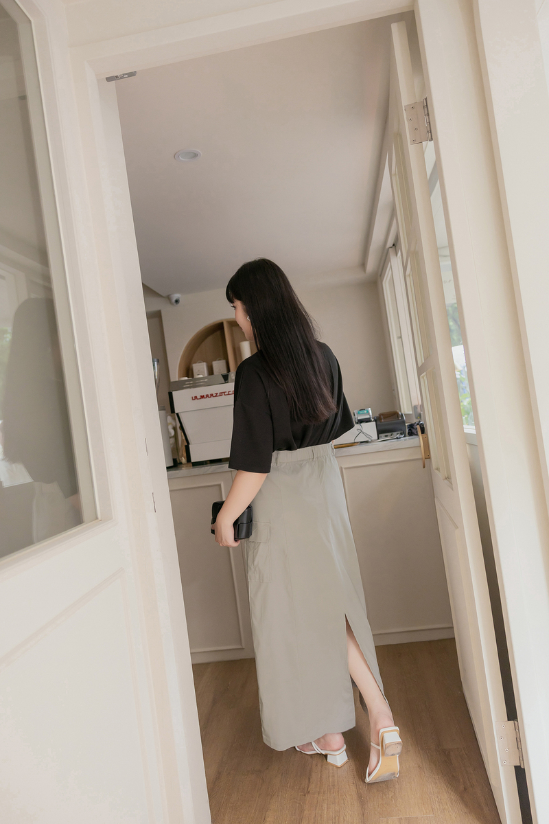 梨型剋星系列-冰感後開岔工裝感裙
