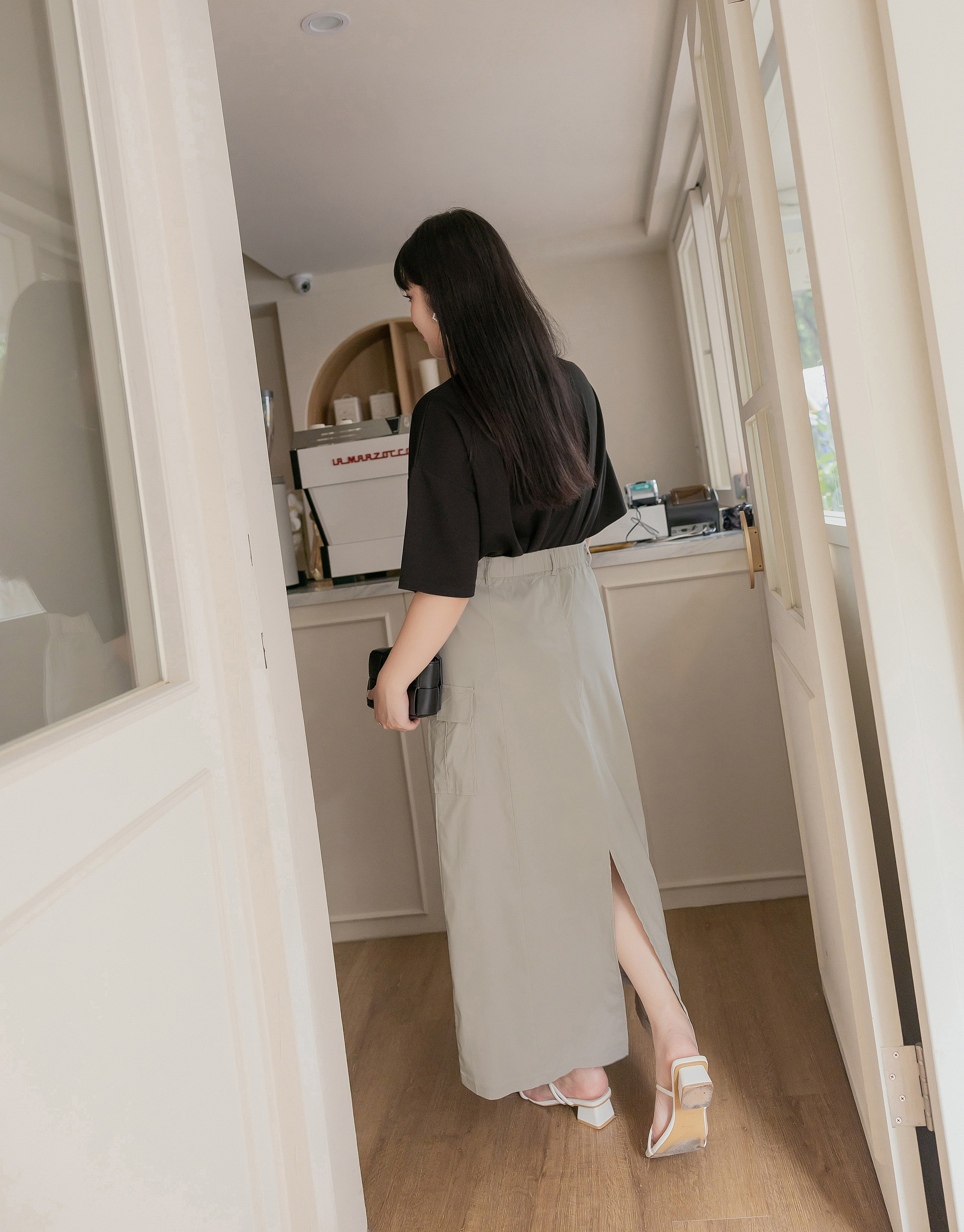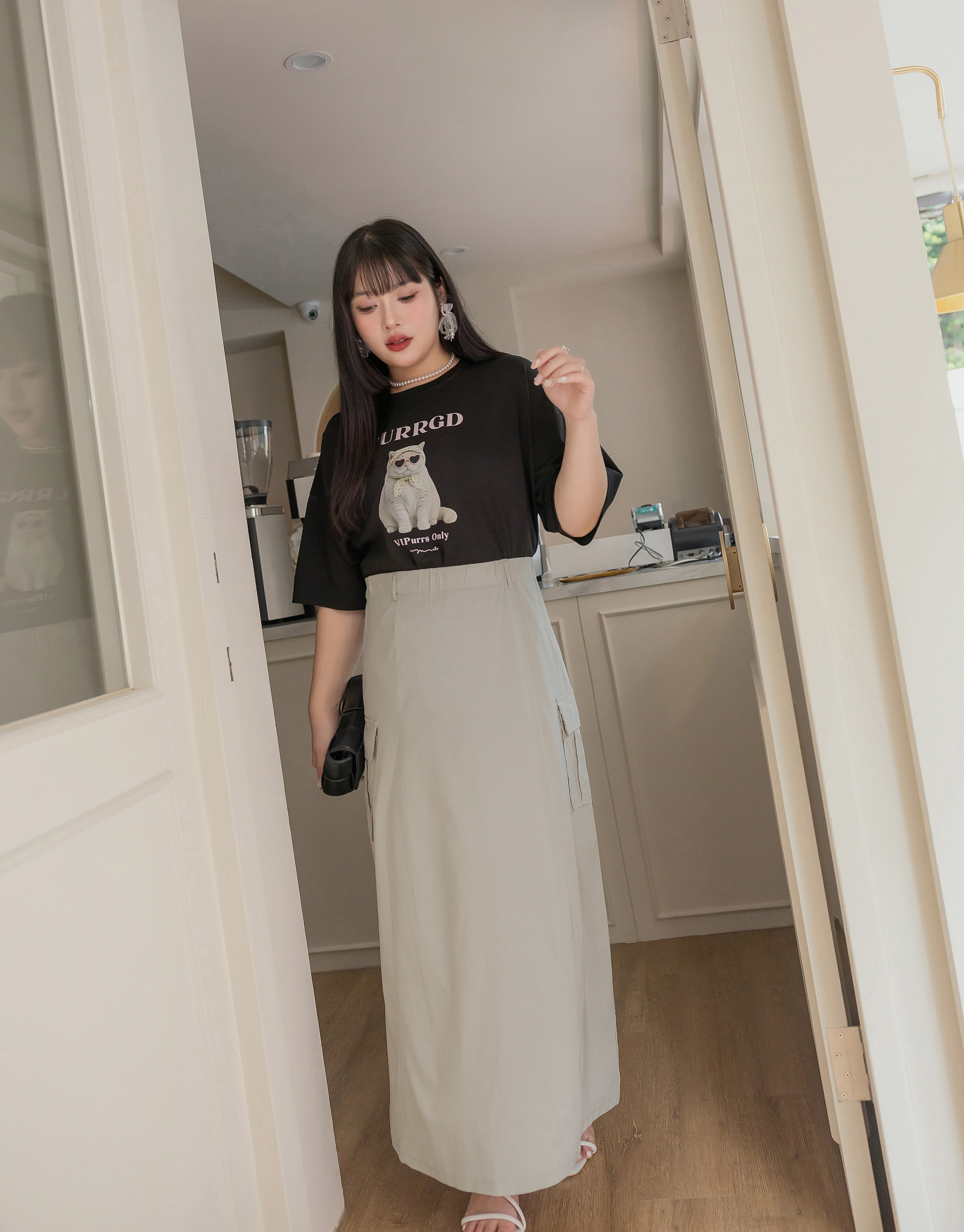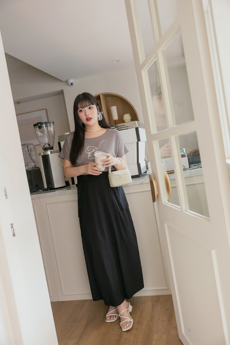 梨型剋星系列-冰感後開岔工裝感裙
