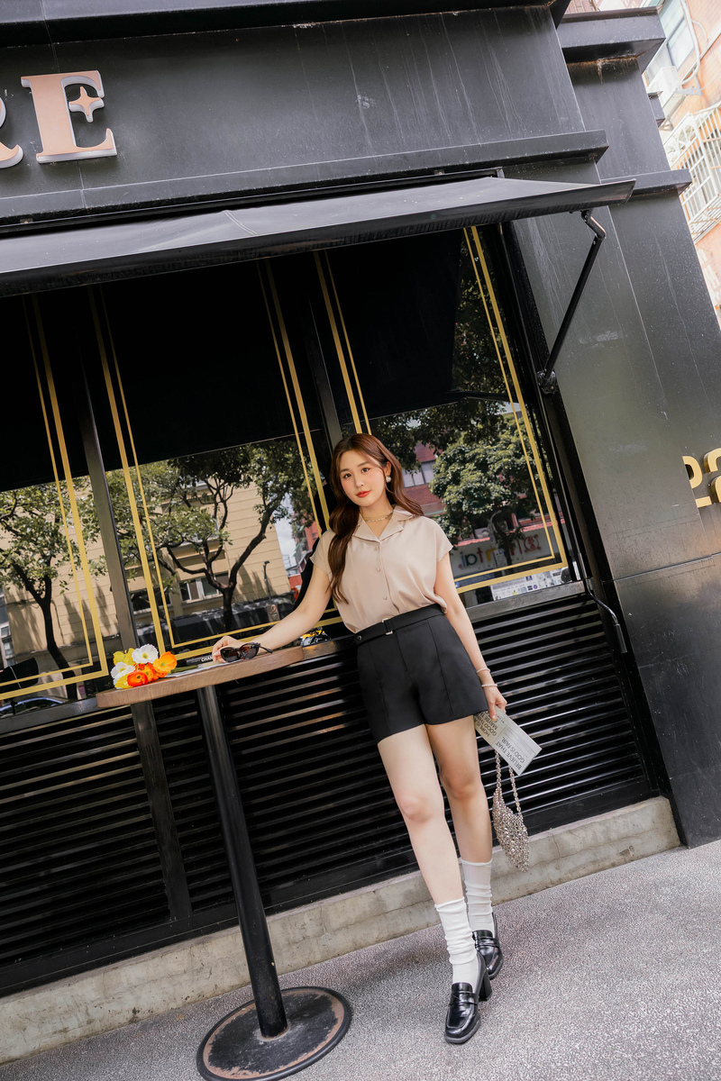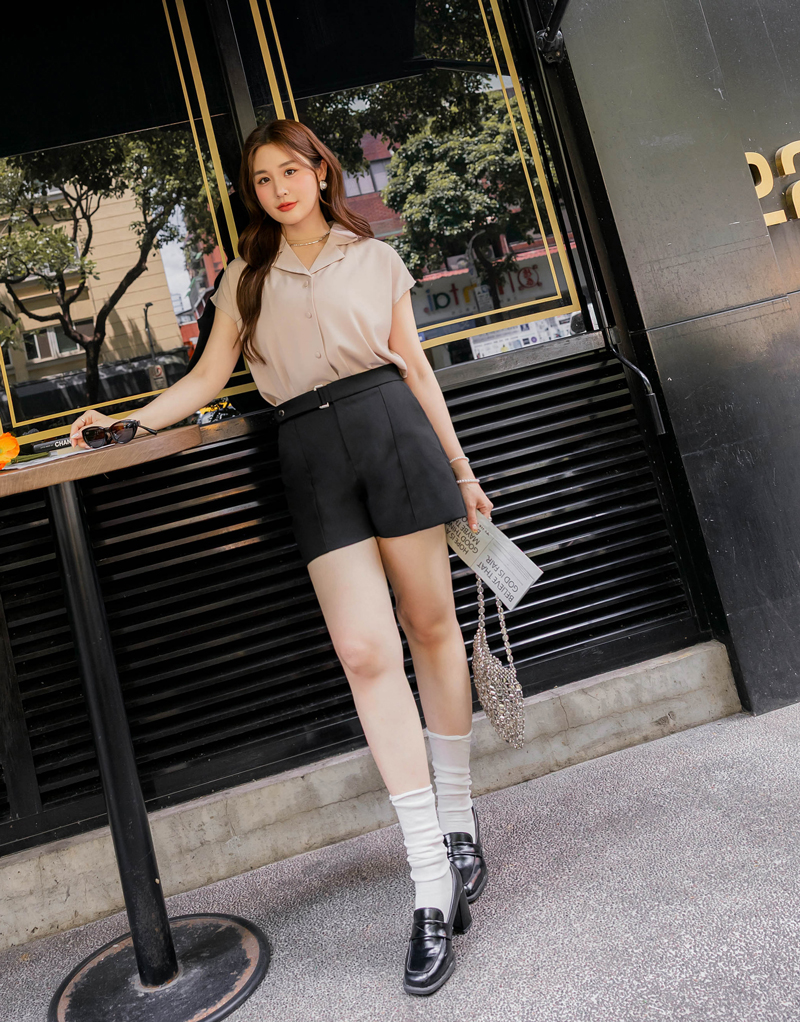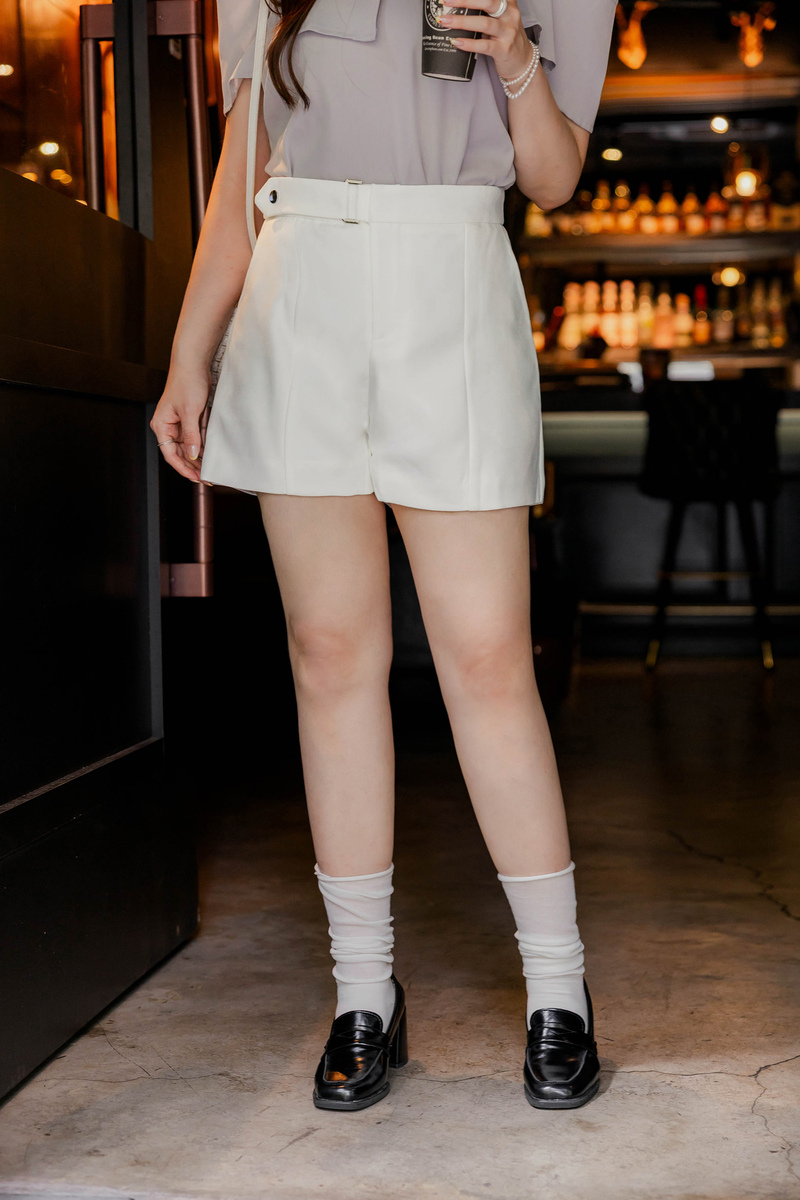 知性腰帶造型後鬆緊口袋短褲