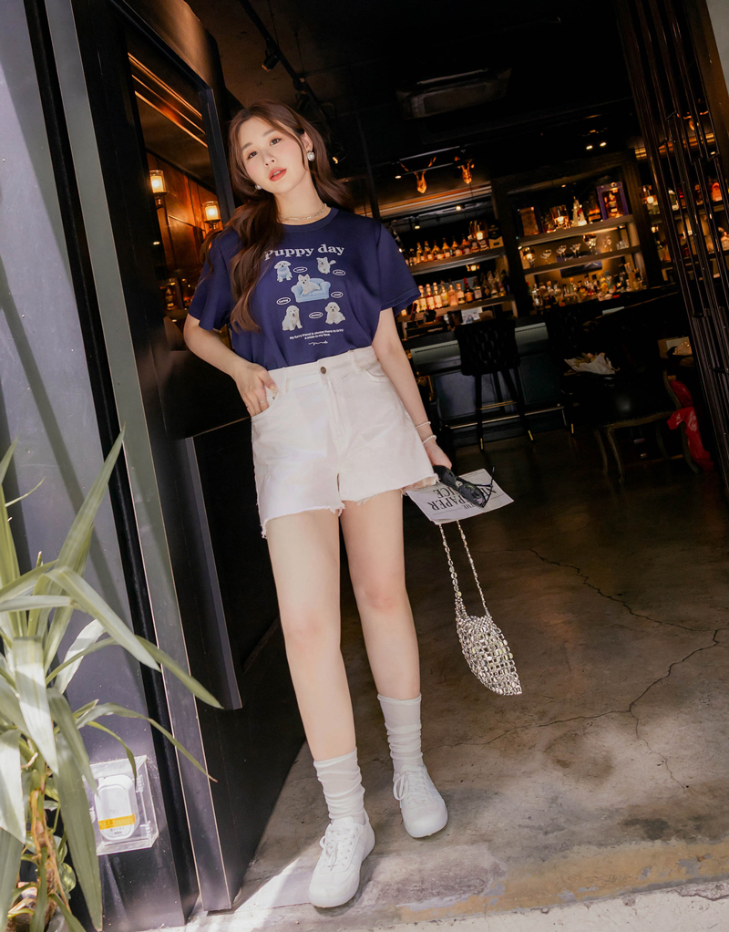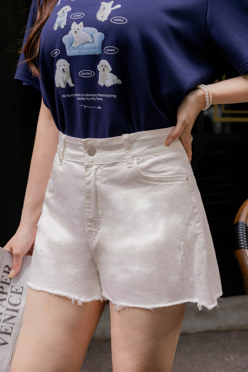 -5KG美感不規則襬牛仔短褲