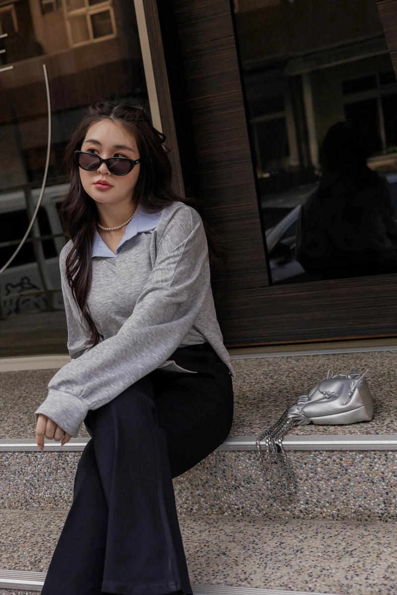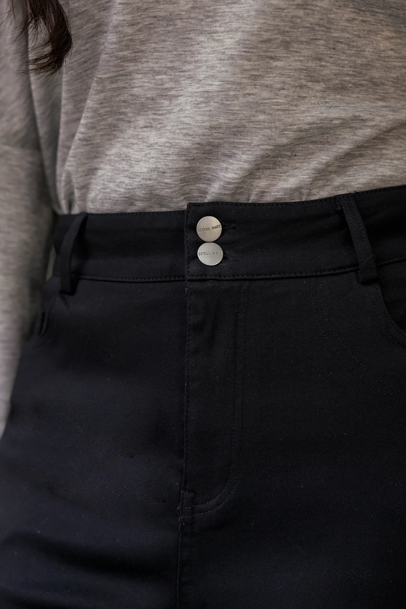 -5KG內磨毛雙扣收腹小喇叭黑褲