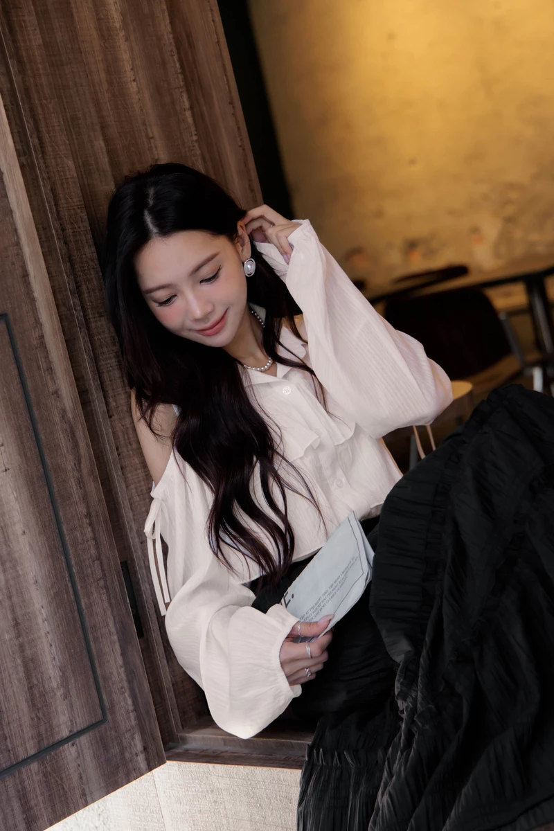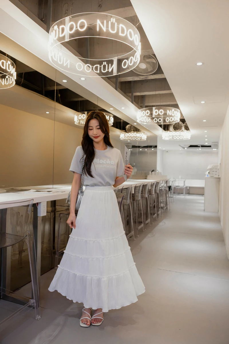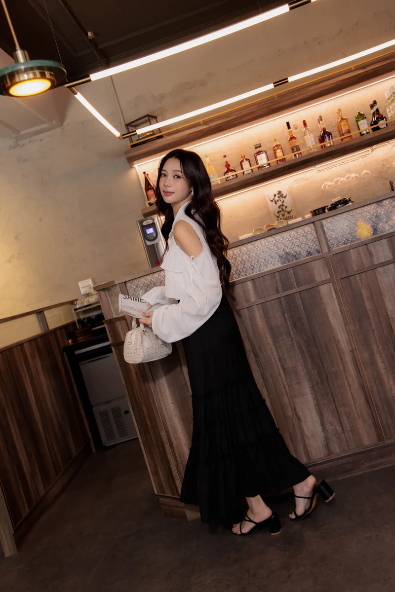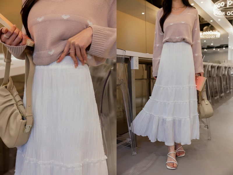 抗皺柔美木耳滾邊蛋糕裙