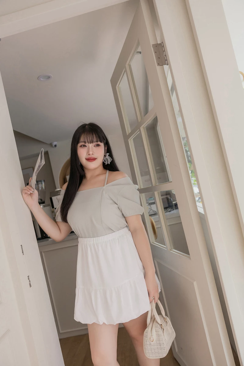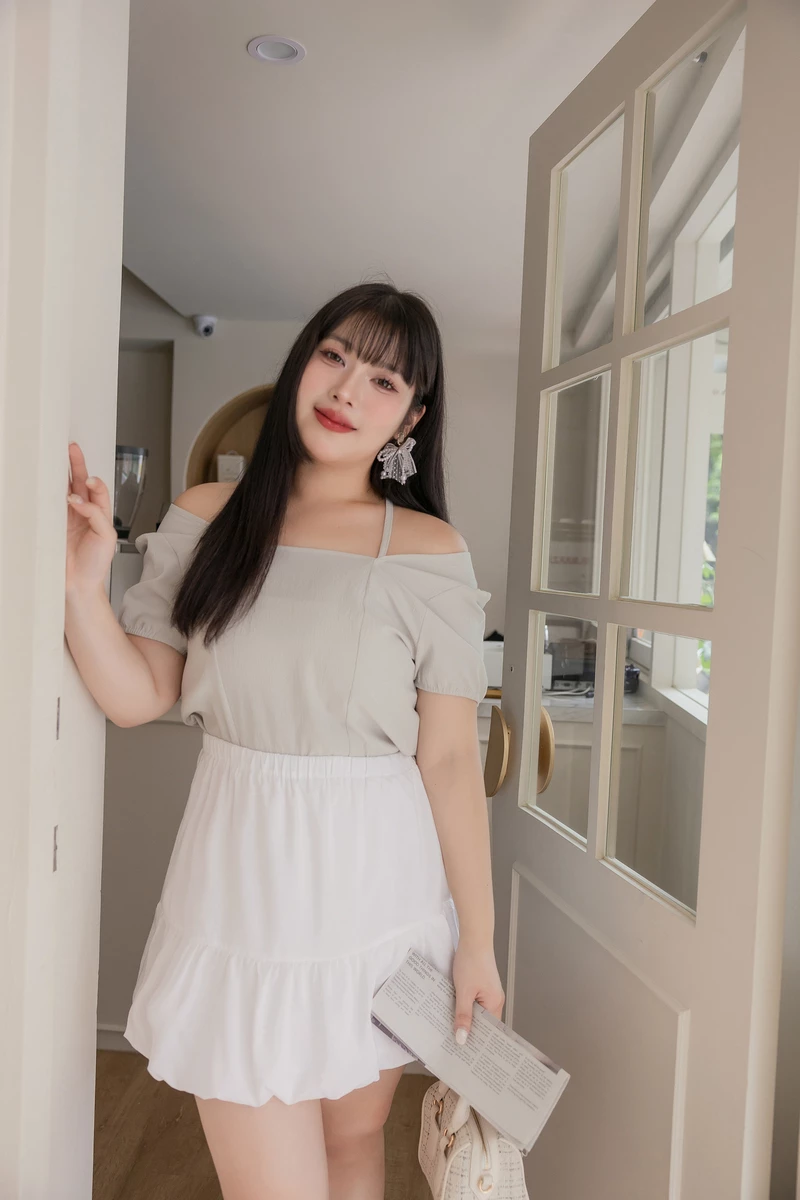 肩可調-超柔蛋糕雪紡上衣