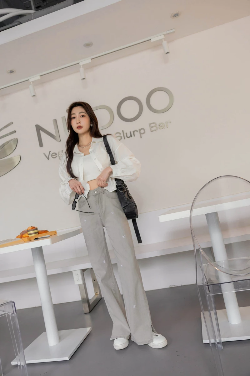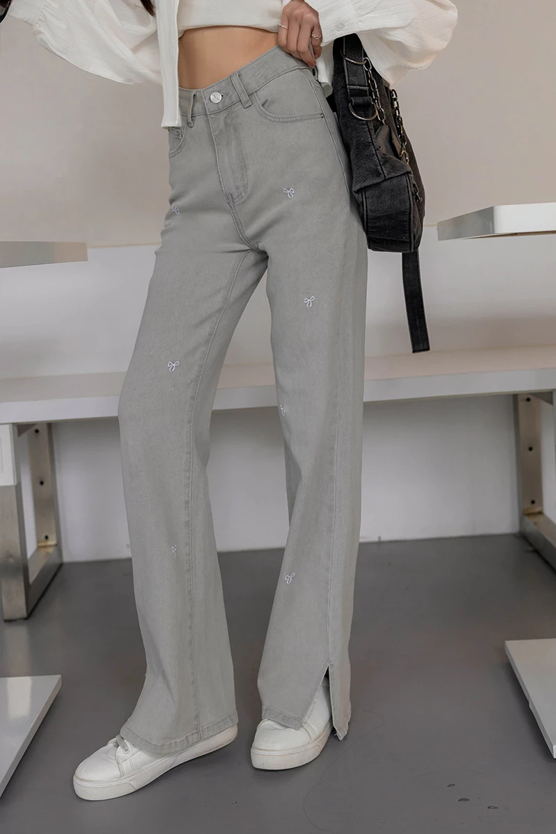 -5KG雪花灰側開岔牛仔裙