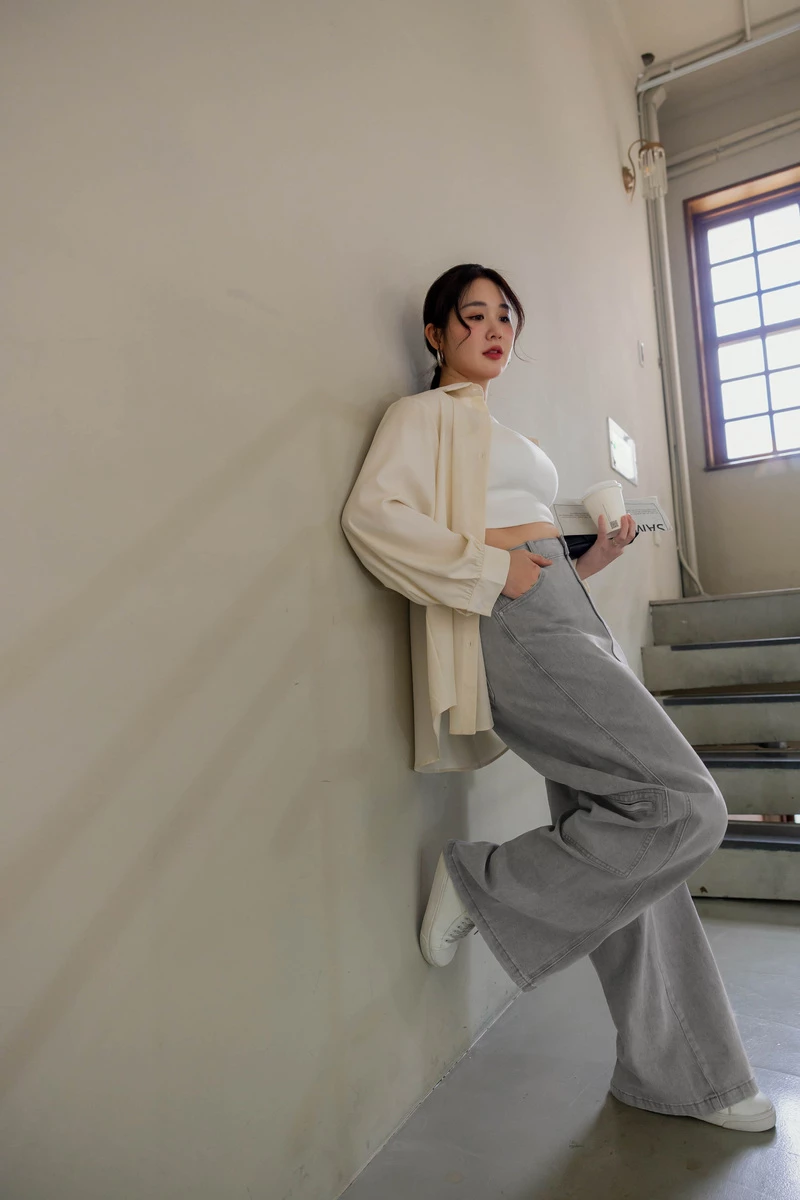 -5KG收腹抽鬚刷白牛仔裙