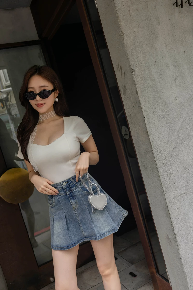 -5KG一眼命中愛心抽鬚牛仔褲裙