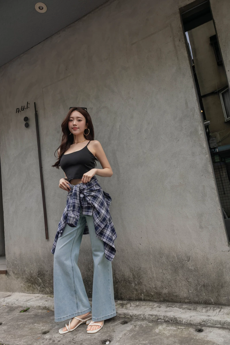 -5KG長腿系列-收腹雙腰耳牛仔寬褲