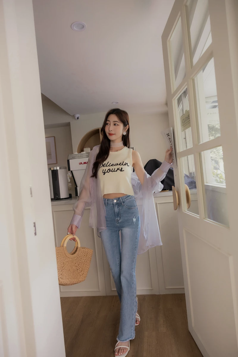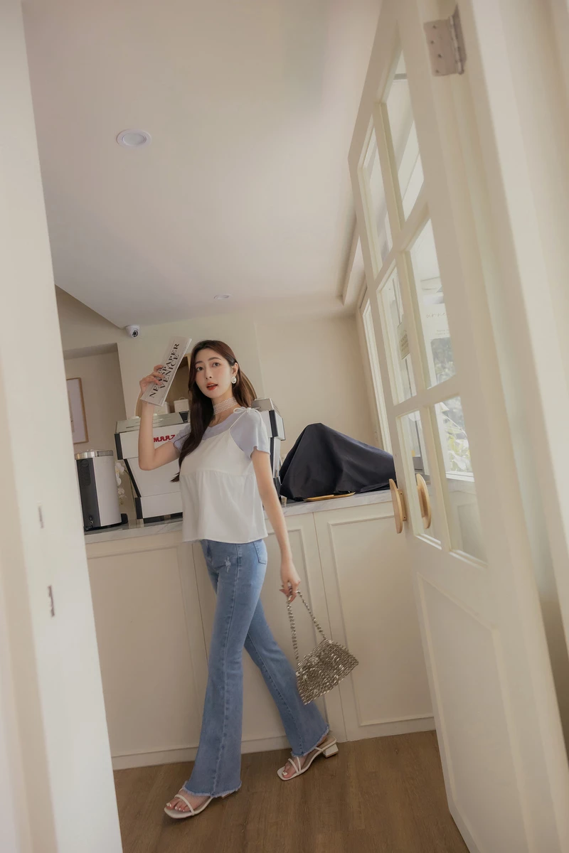高個女限定-5KG後鬆緊刷白牛仔寬褲