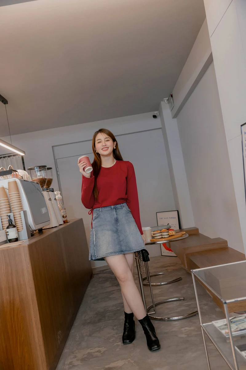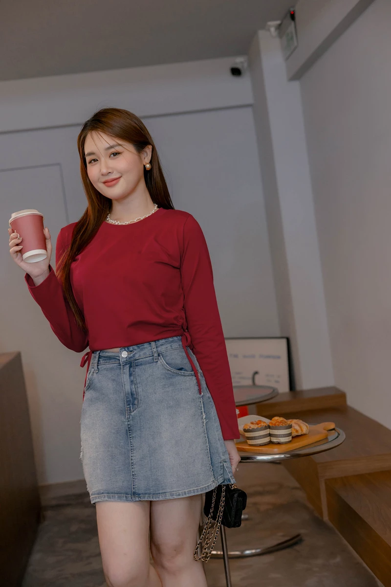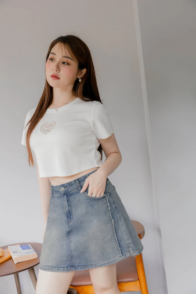 -5KG收腹抽鬚刷白牛仔裙