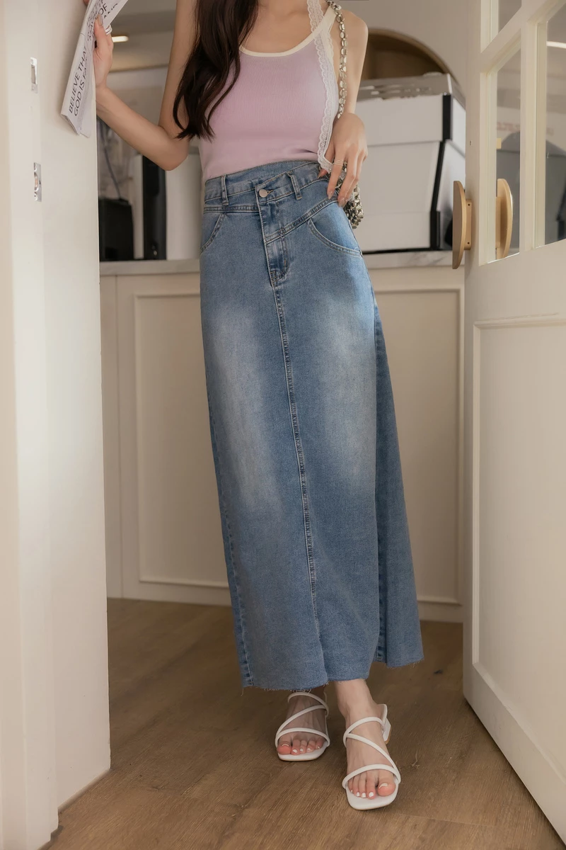 -5KG收腹抽鬚刷白牛仔裙