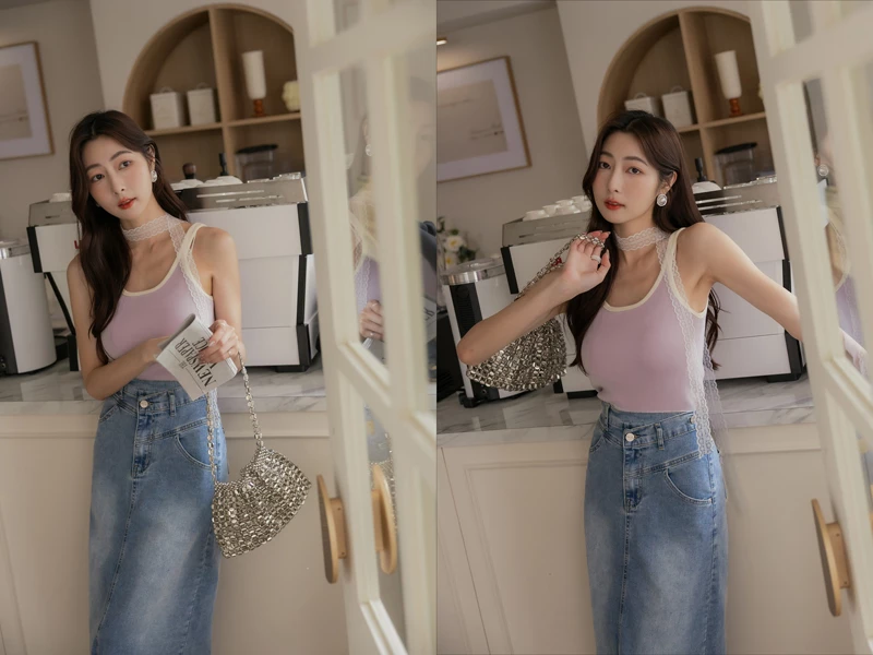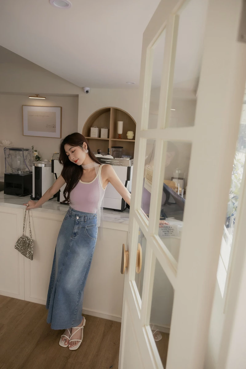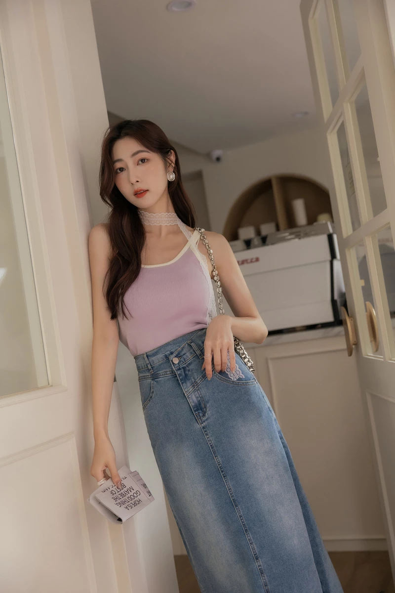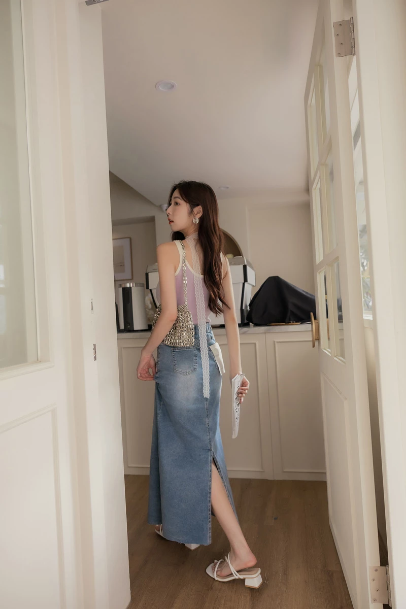 -5KG雪花灰側開岔牛仔裙